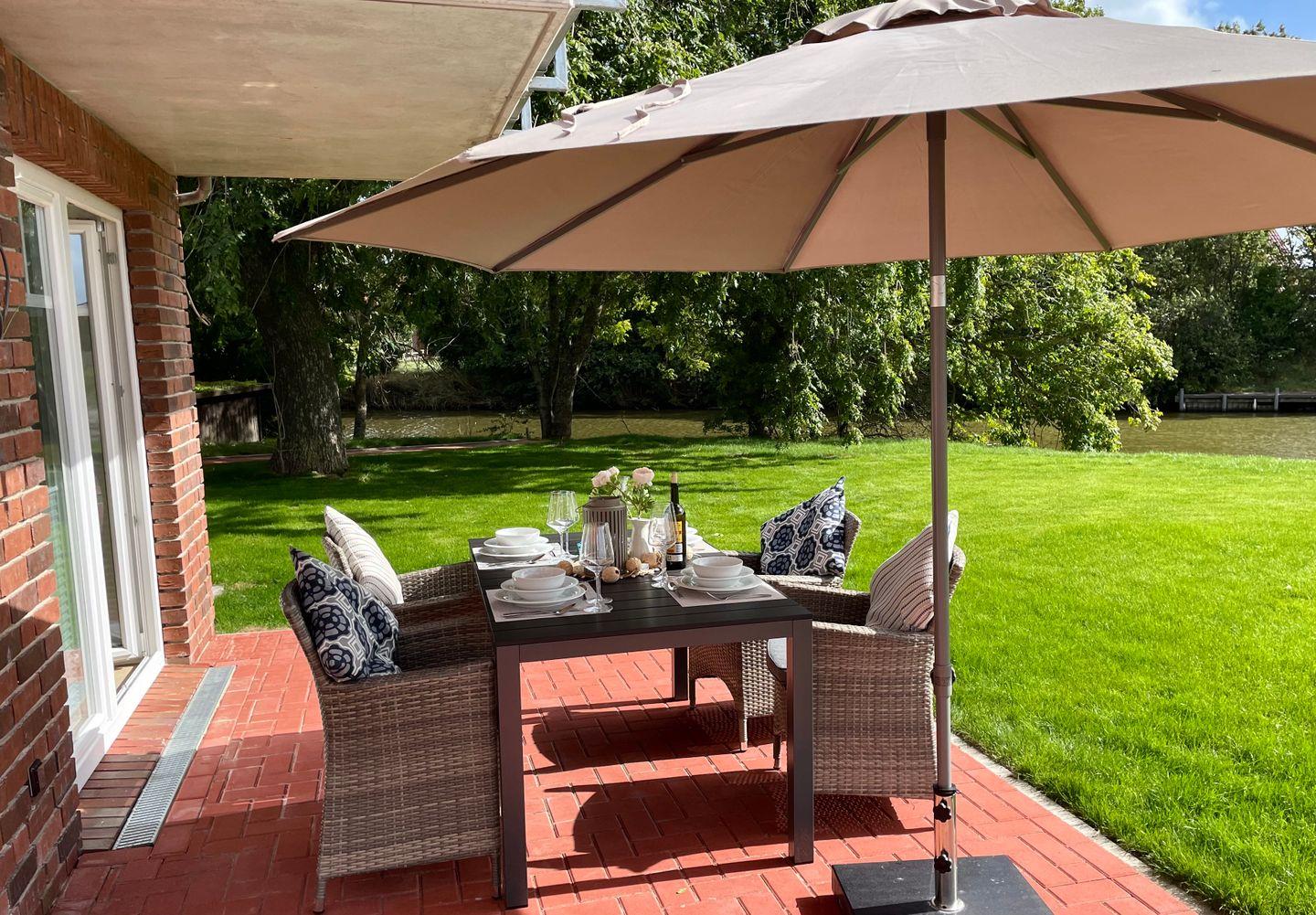 Ihr Lieblingsplatz: den Urlaubstag mit einer Tasse Kaffee auf der Terrasse starten und dem Geschnatter der Enten lauschen.
