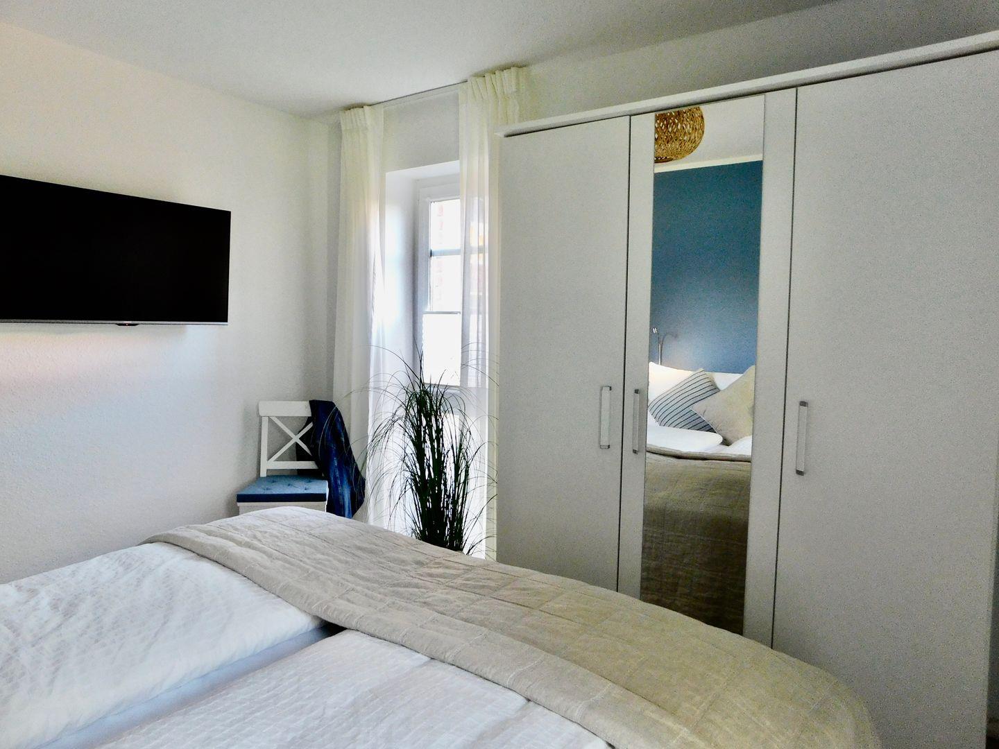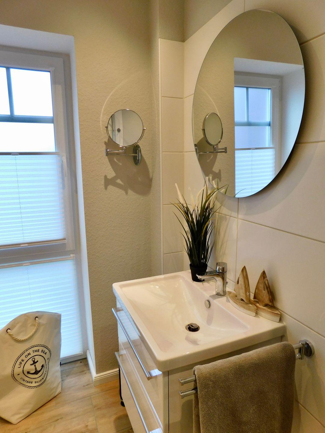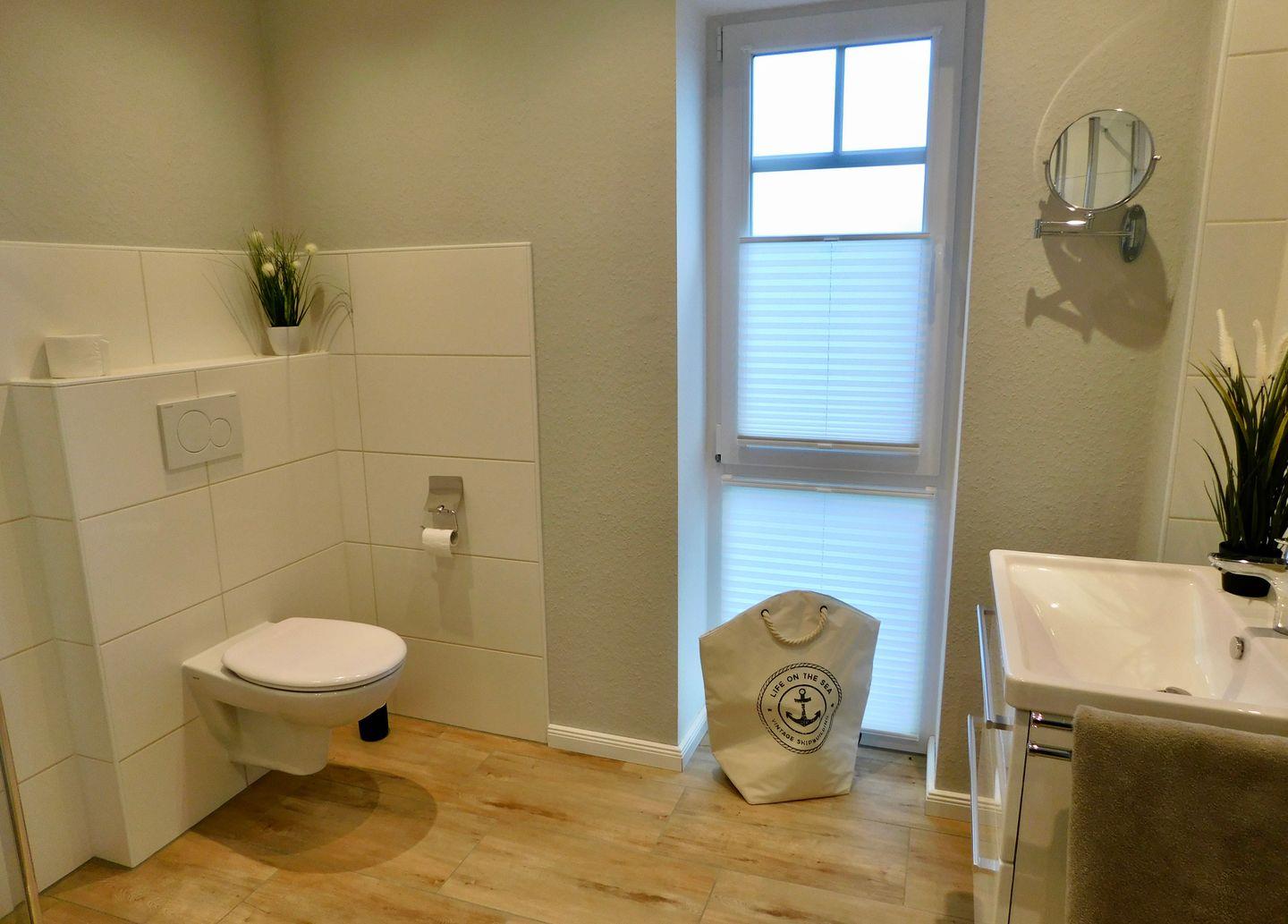 Ausstattungsmerkmale der Wohnung sind: Induktionskochfeld, Filter-Kaffeemaschine, Nespresso-Maschine, Toaster, reichlich Geschirr und Besteck, ostfriesisches Tee-Gedeck, Flötenkessel, Backofen, Gefrierschrank, Geschirrspülmaschine, Waschmaschine, Fön, Bügeleisen mit Brett, Wäscheständer, Handrührgerät, elektrische Außenrolladen in den Schlafzimmern, zweites WC und vieles mehr.