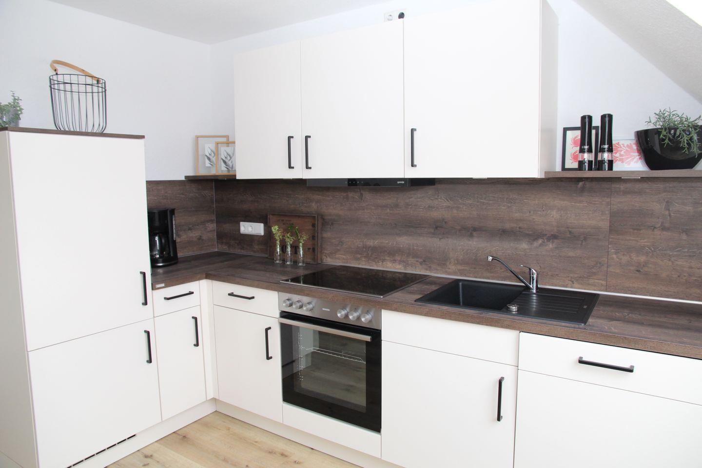 Beginnt Ihr perfekter Urlaubstag vielleicht mit einem ausgiebigen Frühstück? Wenn ja, dann können Sie sich dieses in der komplett ausgestatteten Küche zubereiten. Hier stehen Ihnen ein Herd mit Ceran-Kochfeld, Backofen und Dunstabzugshaube, eine Kühl-/Gefrierkombination, Spülmaschine, Kaffeemaschine, Toaster, Wasserkocher, etc. zur Verfügung. Ebenfalls in der Küche integriert ist eine Waschmaschine.