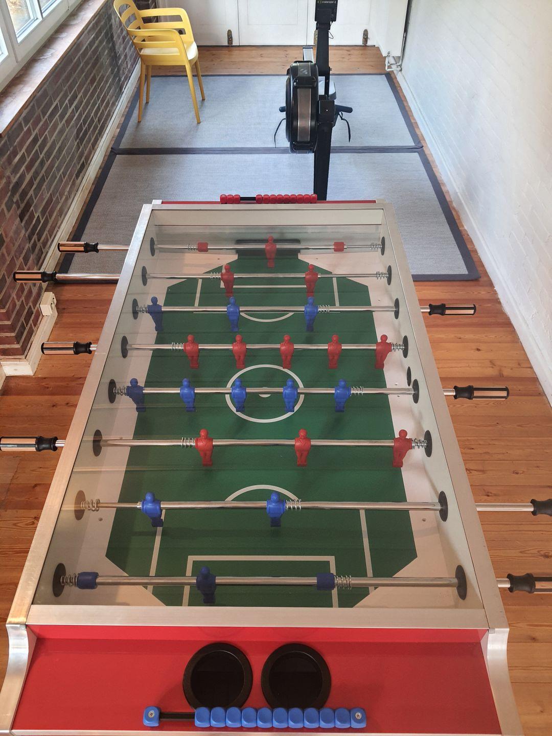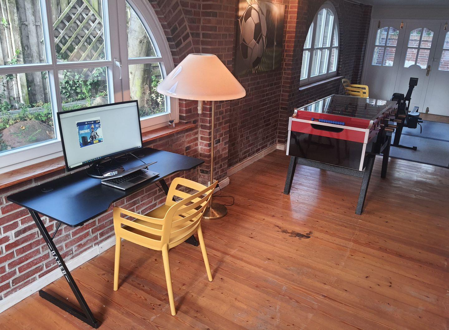 Im Hobbyraum des Hauses befindet sich ein hochwertiges Rudergerät (Benutzung auf eigene Gefahr), ein Tischkicker und ein Schreibtisch mit großem Bildschirm, an dem eine mitgebrachte Spielekonsole oder auch ein PC angeschlossen werden kann.