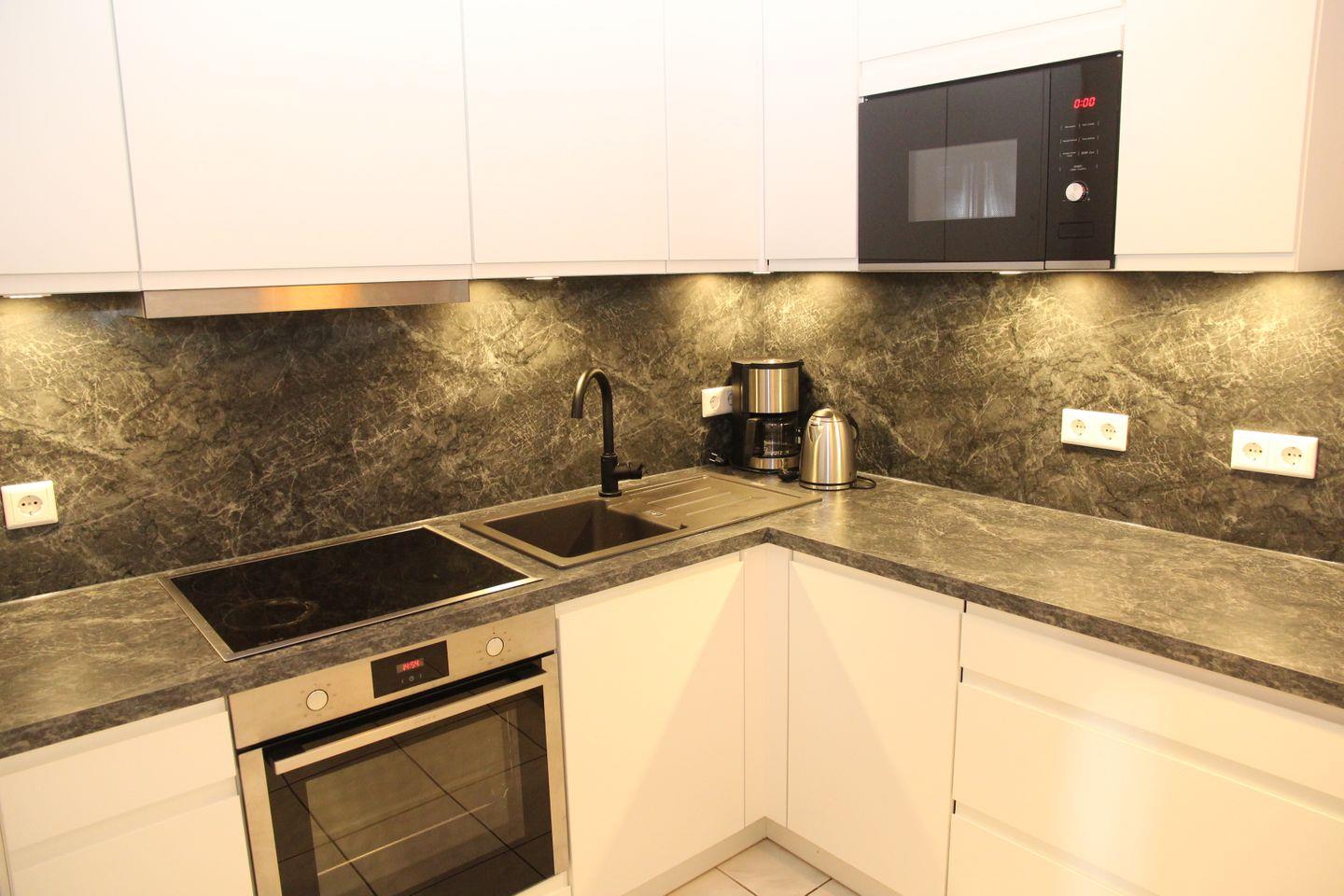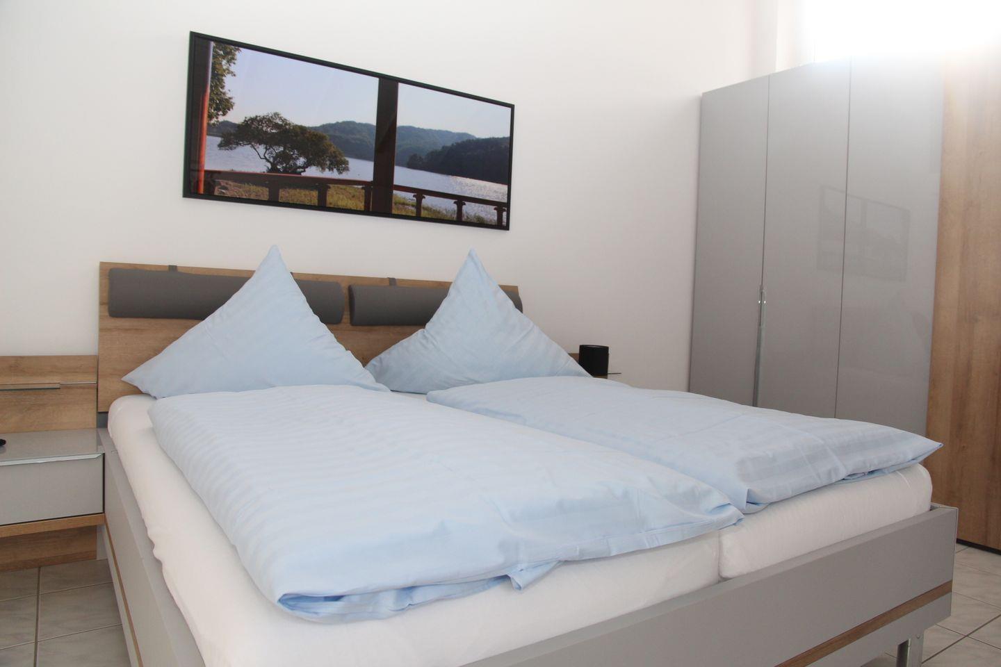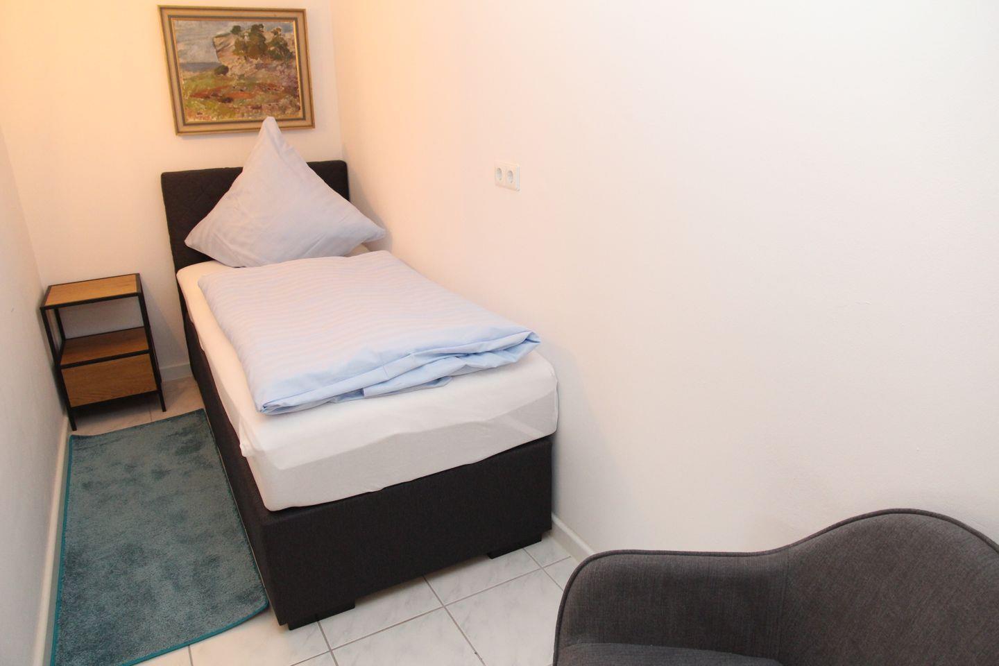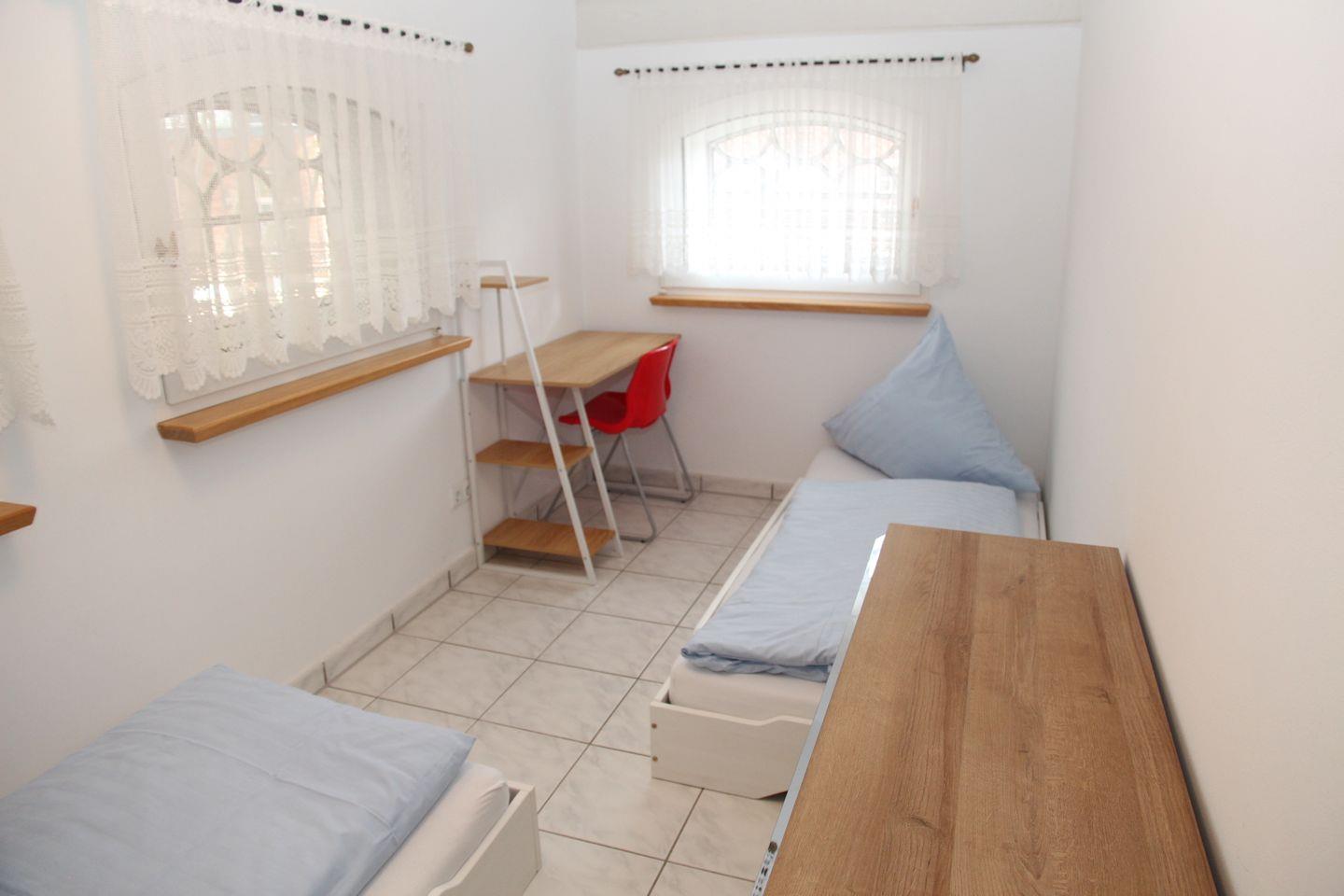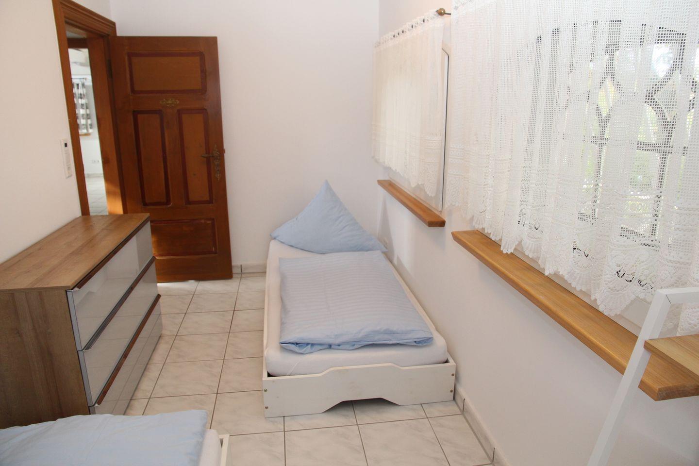 Vom Flur geht noch die zweite vollausgestattete Küche mit bspw. Kühlschrank, Backofen, Cerankochfeld, Mikrowelle, Kaffeemaschine, Toaster und Wasserkocher ab. Der letzte verbliebene Raum beherbergt ein weiteres Schlafzimmer mit Kommode und Schreibtisch. Hier ist ein Einzelbett vorhanden, was auch zu 2 niedrigen Betten umgestellt werden kann, dann ist es allerdings nur für 2 Kinder geeignet. Dieser Wunsch ist nur auf Anfrage buchbar.