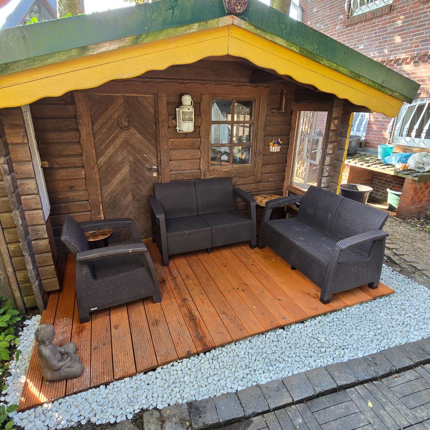 Zu dem Haus gehört auch ein Garten, der mit Loungemöbeln bestückt ist. Das gesamte Haus ist allergikerfreundlich eingerichtet und verfügt über weiße Fliesen mit integrierter Fußbodenheizung.