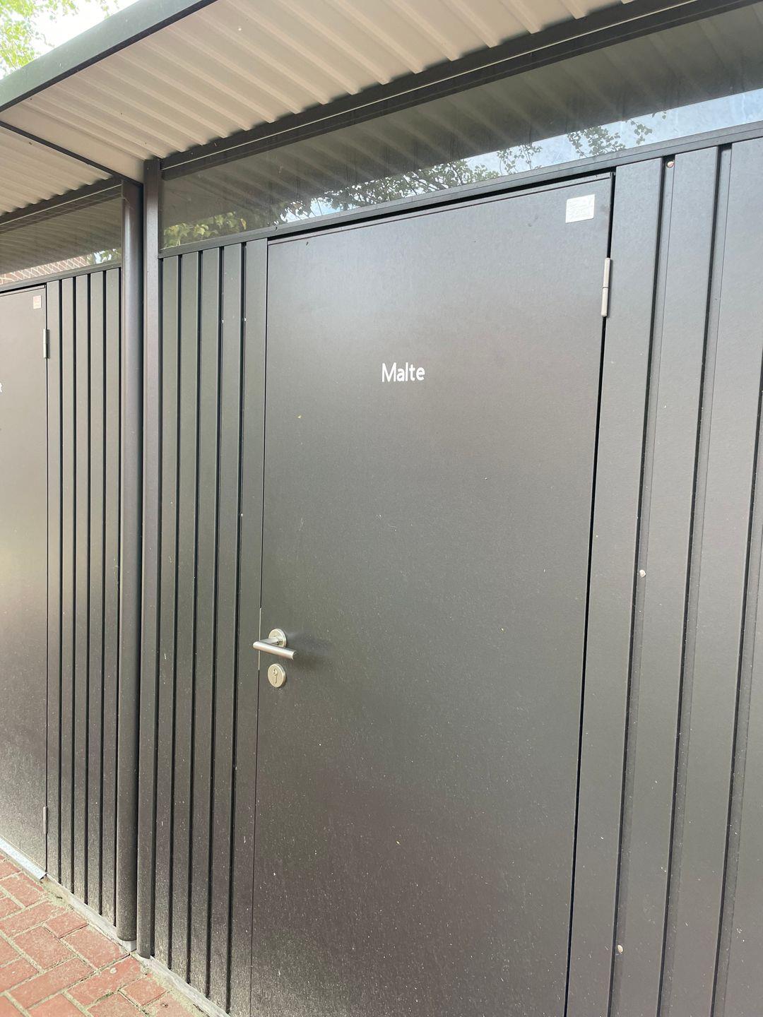 Vor dem Haus befindet sich ein abschließbares Abstellhaus mit Stromanschluss, an den Sie Ihre mitgebrachten E-Bikes aufladen können.