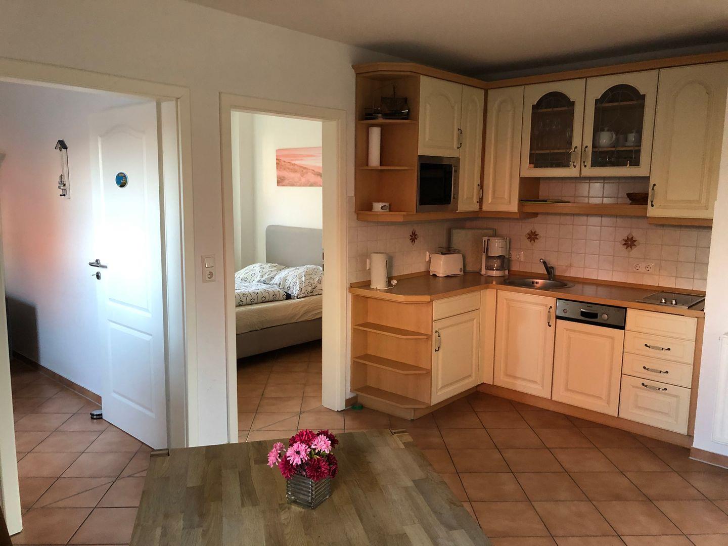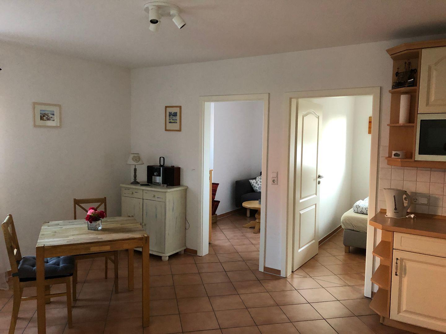 In dieser kleinen und gemütlichen Ferienwohnung kann man sich wohlfühlen. Die Wohnung befindet sich im Erdgeschoß des Hauses Diekkieker. Im Hausflur gibt es einen Abstellraum mit Waschmaschine, Trockner, Staubsauger usw. Der Raum ist für beide Wohnungen verfügbar. Kommen Sie herein! Im vorderen Bereich befindet sich die helle Landhausküche, die voll ausgestattet ist. Des Weiteren können Sie am Esstisch die zubereiteten Speisen genießen. Nebenan liegt der separate Fernsehraum mit Couch. Das Schlafzimmer mit Doppelbett (140 x 200 cm, großes Laken erforderlich) und Kleiderschrank lädt zum Relaxen und Träumen ein. Das helle Duschbad befindet sich ebenfalls im EG. Hinterm Haus finden Sie die Terrasse, die zum frische Nordseeluft schnappen einlädt. Das Haus Diekkieker kann auch komplett für bis zu 7 Personen zu entsprechenden Preisen gebucht werden. WLAN ist verfügbar! Ein Parkplatz gibt es vor dem Haus.