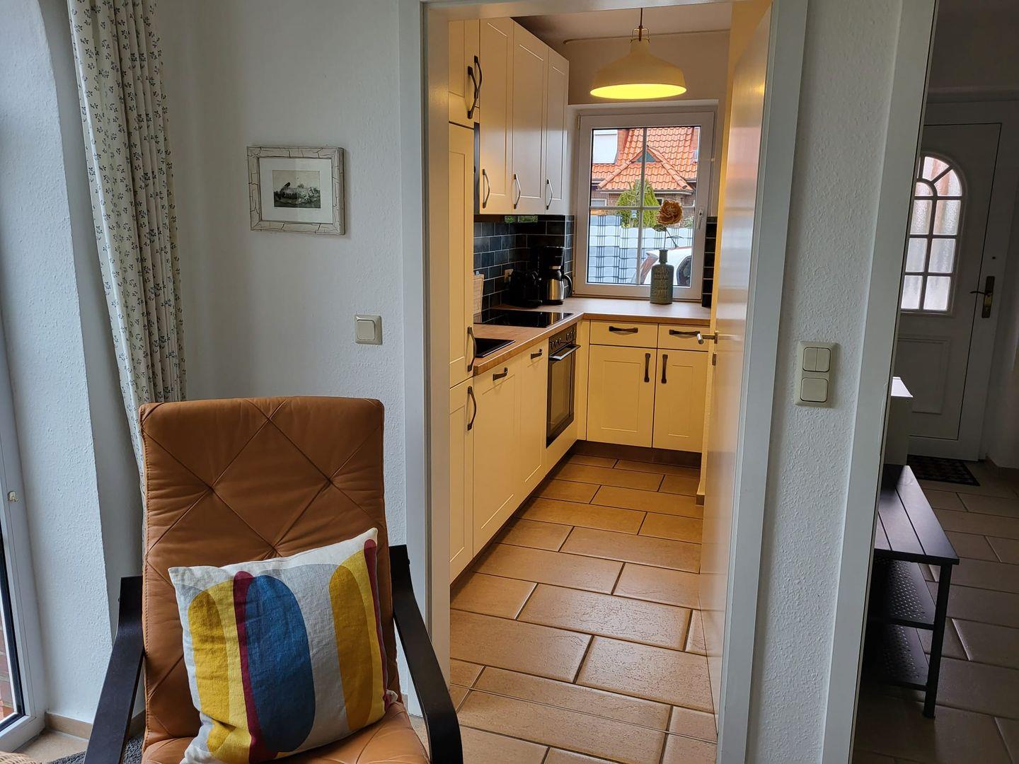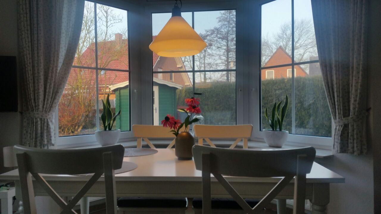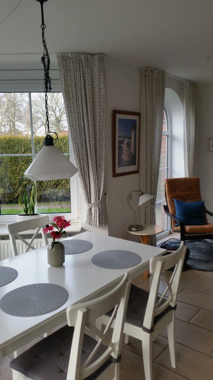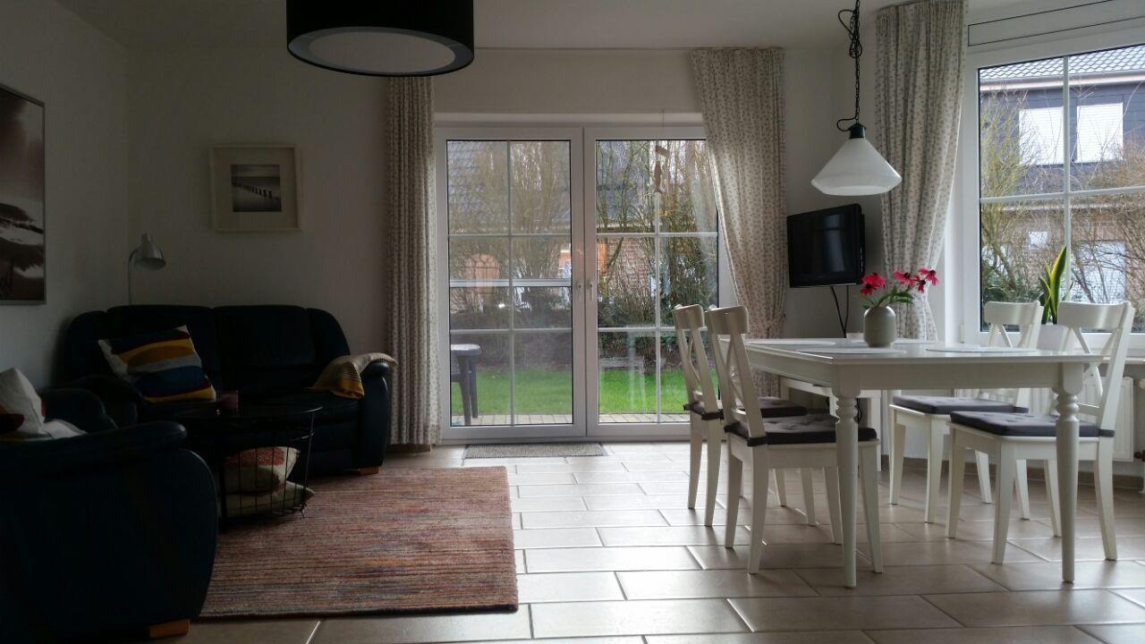 Das Haus Frauke ist eine Doppelhaushälfte mit einer Wohnfläche von 70 m². Das Ferienhaus befindet sich in einer Sackgasse und ist somit sehr ruhig gelegen - ideal zum entspannen. Zu den Zwillingsmühlen ist es nicht weit. Kommen Sie herein! Im hellen lichtdurchfluteten Wohnzimmer erwartet Sie eine gemütliche Couchgarnitur, ein Smart-TV und eine Sharp-Musikanlage mit Bluetoothverbindung und digitalem Radio, sowie CD/MP3 und Aux. Hier befindet sich ebenso der Essbereich vor dem Erker. Dieser lädt zu gemütlichen Abenden zum Essen und Klönen ein. Die angrenzende neuwertige Küche (von 2023) ist komplett ausgestattet. Direkt vom Wohnzimmer haben Sie Zugang zur Terrasse, wo Sie die Sonne genießen und sich den frischen Wind um die Nase wehen lassen können. Der Garten ist mit einer Hecke und einem Wall umgeben. Das Gäste-WC komplettiert das EG. Die Waschmaschine steht im Abstellraum bereit. Im Obergeschoss liegen die beiden Schlafzimmer, eines mit Doppelbett und eines mit zwei Einzelbetten, die mit modernen weißen Möbeln ausgestattet sind. Hier lässt es sich wohlig entspannen und träumen. Auf dieser Etage befindet sich auch das Badezimmer mit Dusche und WC. Im Dachgeschoß gibt es noch eine Spielecke für die Kleinen. WLAN ist verfügbar! Vor dem Haus steht ein Parkplatz zur Verfügung. Ihr Hund ist hier herzlich willkommen!