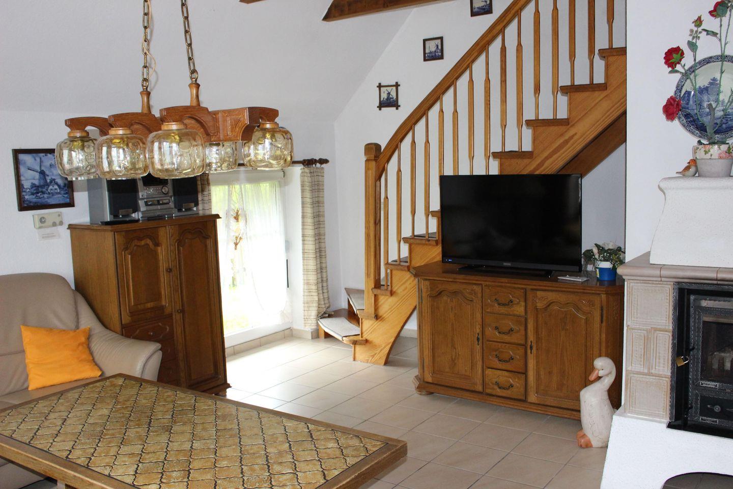 Das Ferienhaus Maren bietet mit 3 Schlafzimmern Platz für bis zu 6 Personen. Außerdem stehen 2 Kinderbetten zur Verfügung. Das Haus ist kinderfreundlich eingerichtet (Treppengitter, 2 Wickeltische). Im Wohn-/Essbereich befindet sich die Küche, die sehr gut ausgestattet ist, u. a. mit Geschirrspüler, Kühlschrank mit Gefrierfach, Mikrowelle und Espressomaschine. Geschirr ist reichlich vorhanden. Gegenüber liegt der Essbereich mit einer gemütlichen Eckbank, die zu schönen Klön- und Spieleabende einlädt. Der Wohnbereich verfügt über eine große Ledergarnitur und Flachbild-TV. Leider darf der Kamin aus brandschutzrechtlichen Gründen nicht benutzt werden. Von hier aus erreichen Sie die großzügige Terrasse, wo Sie die Möglichkeit zum Grillen (kein Grill vorhanden) und Relaxen haben. Im Erdgeschoß ist ebenfalls ein Schlafzimmer mit Doppelbett und Vinylboden. Das helle Duschbad mit Toilette und Waschtisch komplettiert das Erdgeschoß. Hier steht auch eine Münzwaschmaschine zur Benutzung. Im Obergeschoß finden Sie 2 weitere Schlafzimmer, eines mit Doppelbett und eines mit 2 Einzelbetten. Außerdem stehen hier jeweils ein Kinderbett und ein Wickeltisch. Zusätzlich befindet sich im OG eine Toilette. WLAN ist verfügbar! Ihr Hund ist ein gern gesehener Gast. Ein massiver Abstellschuppen für evtl. mitgebrachte Fahrräder ist auch vorhanden. Der Parkplatz befindet sich direkt vor dem Haus.