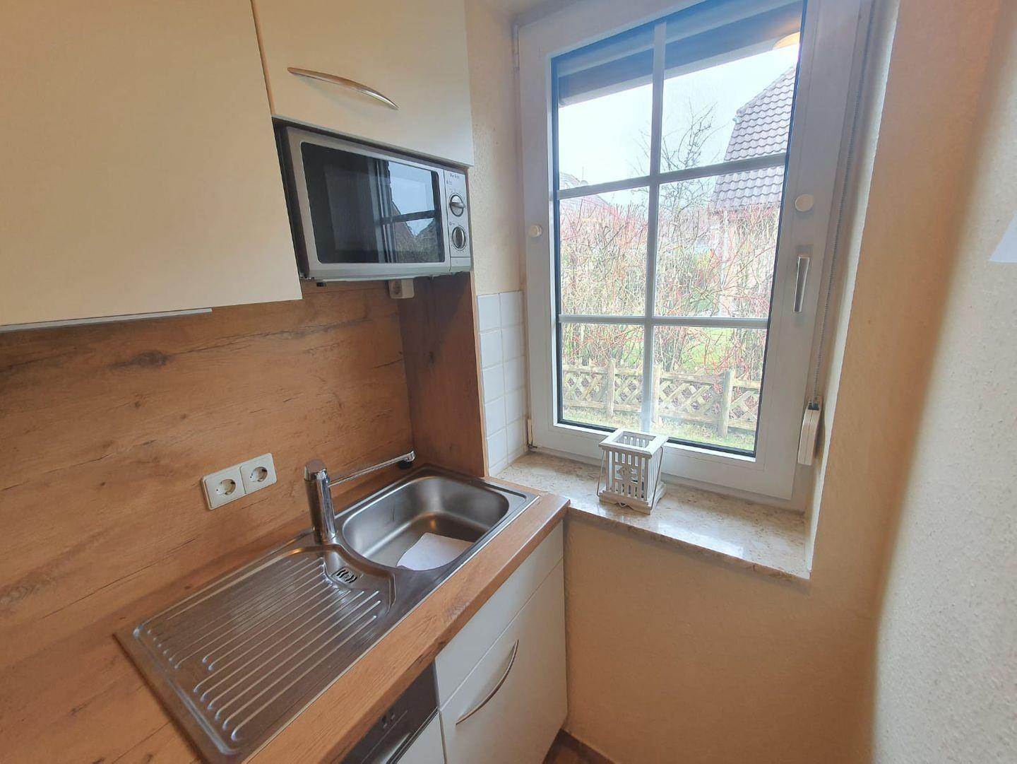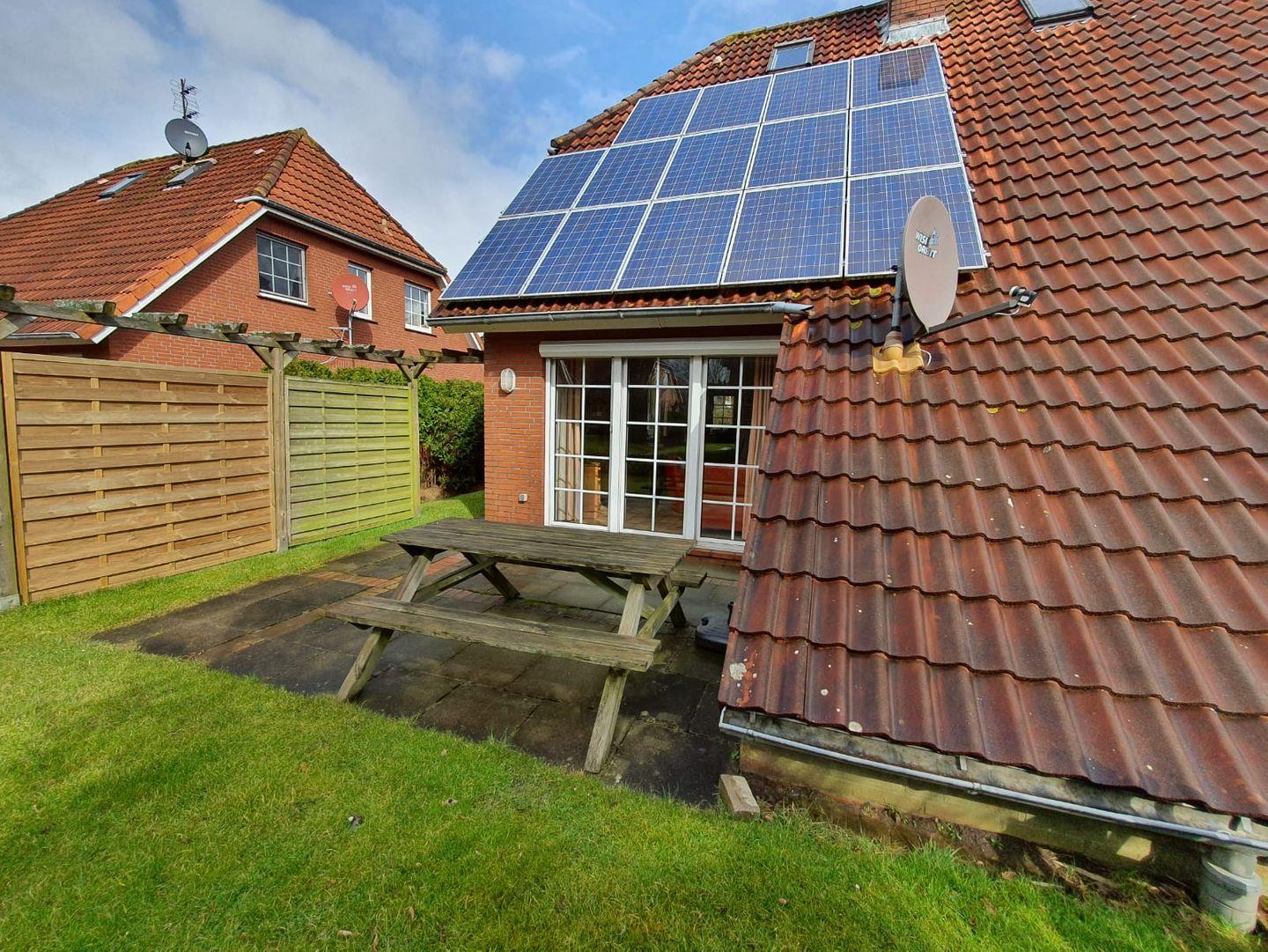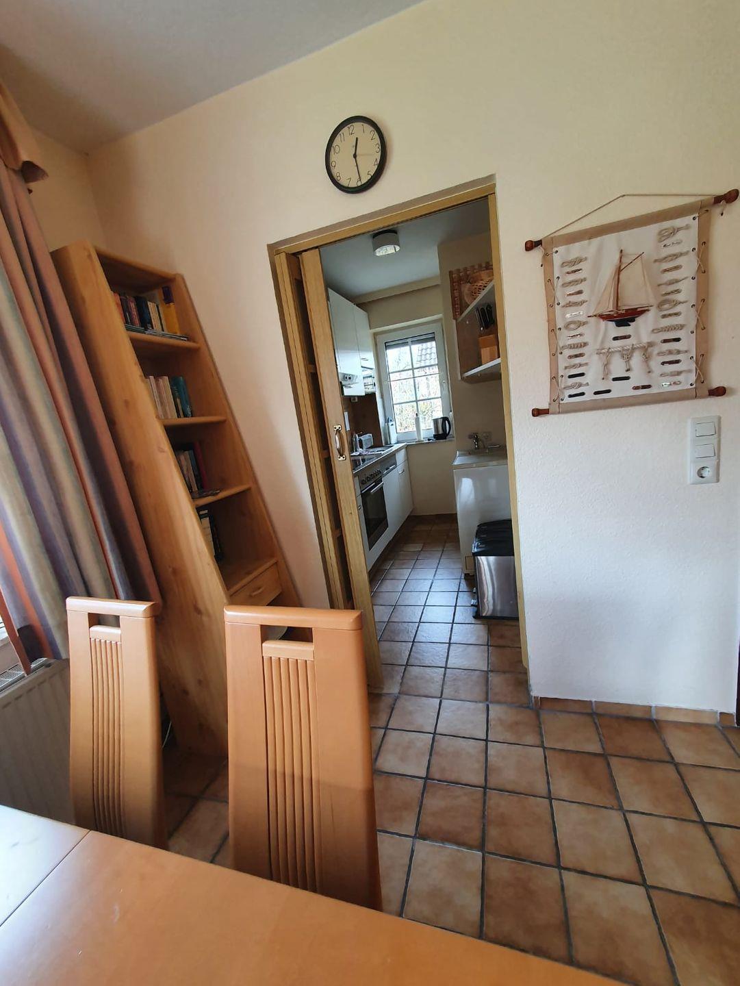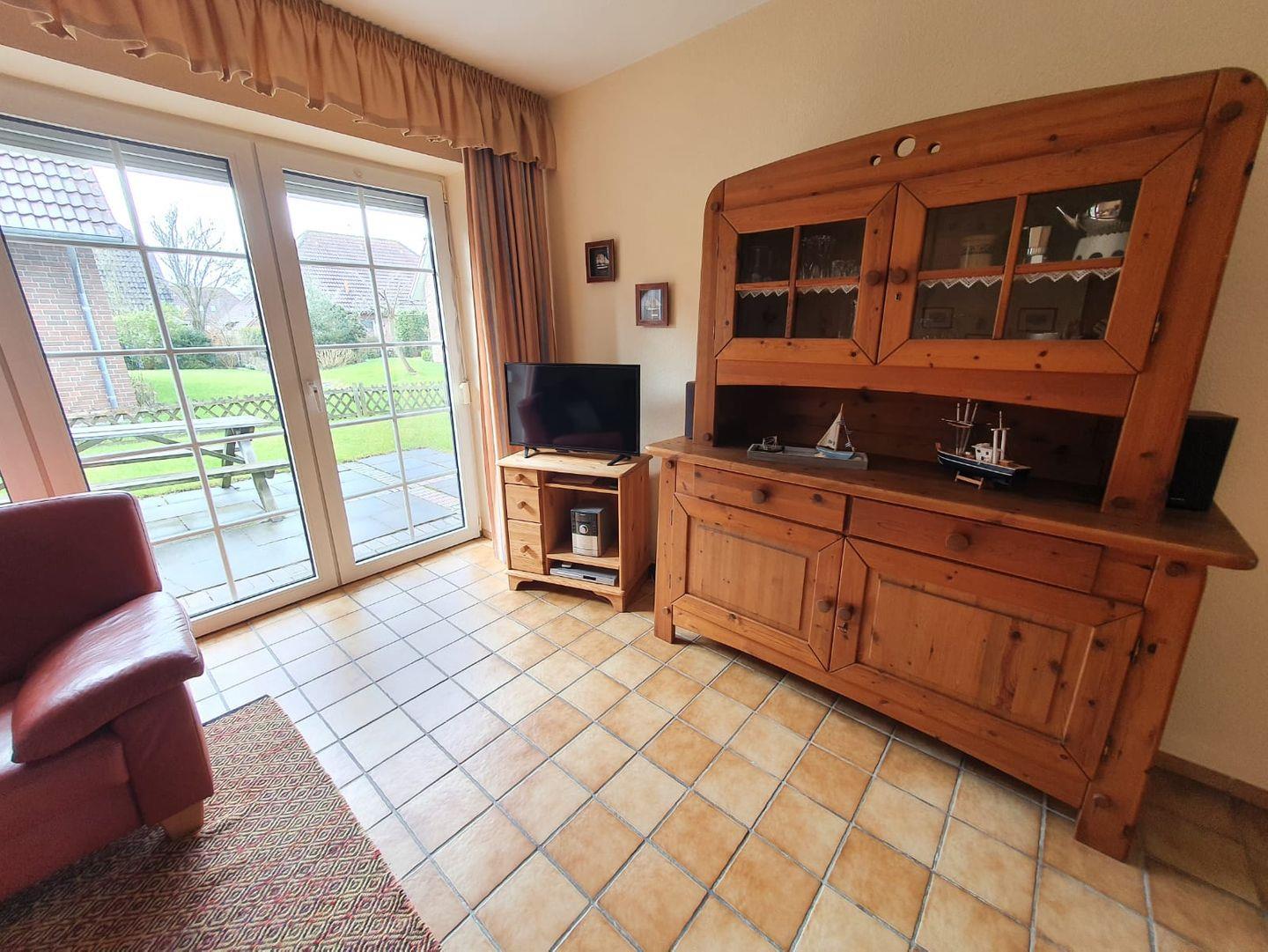Willkommen im Ferienhaus Mupfel! Die helle gemütlich eingerichtete Doppelhaushälfte sorgt für Entspannung in Ihrem Urlaub. Es liegt in einer ruhigen Seitenstraße, ca. 5 Minuten zu Fuß zum Ortskern. Treten Sie ein! Durch den Flur gelangen Sie in den hellen Wohn- und Essbereich. Der Wohnbereich bietet eine gemütliche Ledercouch und 2 Sessel. Mit Flachbild-TV, Micro-Musikanlage können Sie entspannte Stunden genießen. Auch der Kamin lädt zu ruhigen (Kuschel-)Abenden ein. Von hier gelangen Sie auf die Terrasse, wo Sie die Seeluft genießen und sich den frischen Wind um die Nase wehen lassen können. Am großen Esstisch können bis zu 6 Personen z. B. das Abendessen genießen, Klönen, Spieleabende veranstalten usw. Sie blicken von hier direkt in den Garten. Angrenzend befindet sich die separate Küche mit Kühlschrank, Gefrierfach, Backofen, Cerankochfeld, Geschirrspüler, Mikrowelle und umfangreicher Ausstattung (z. B. Kaffeemaschine, Toaster, Eier- und Wasserkocher). Ein Telefonanschluß mit kostenfreier Einwahlmöglichkeit in das deutsche Festnetz finden Sie im Flur. WLAN ist ebenfalls verfügbar. Im Erdgeschoß gibt es noch ein Gäste-WC. Im Obergeschoß befinden sich 2 Schlafräume, eines mit einem Doppelbett und eines mit Einzelbetten. Ein Kinderbett, ein Hochstuhl sowie ein Wickeltisch stehen für die Kleinen bereit. Hier kommen Sie auch in das helle Duschbad. Durch das zweite Schlafzimmer gelangen Sie zum Schlafraum im Dachgiebel, wo ebenfalls noch 2 Einzelbetten stehen. Hier gibt es einen Relaxsessel und ein Flachbild-TV - Entspannung pur. Alle Fenster verfügen über Außenrollos! Eine Waschmaschine, Bügelbrett/-eisen, eine Wäschespinne für den Außenbereich stehen für die Wäschepflege zur Verfügung. Abstellkammern sind im Innen- und Außenbereich vorhanden. Zum Haus gehört ein eigener Parkplatz auf dem Gelände der Eigentumsanlage.