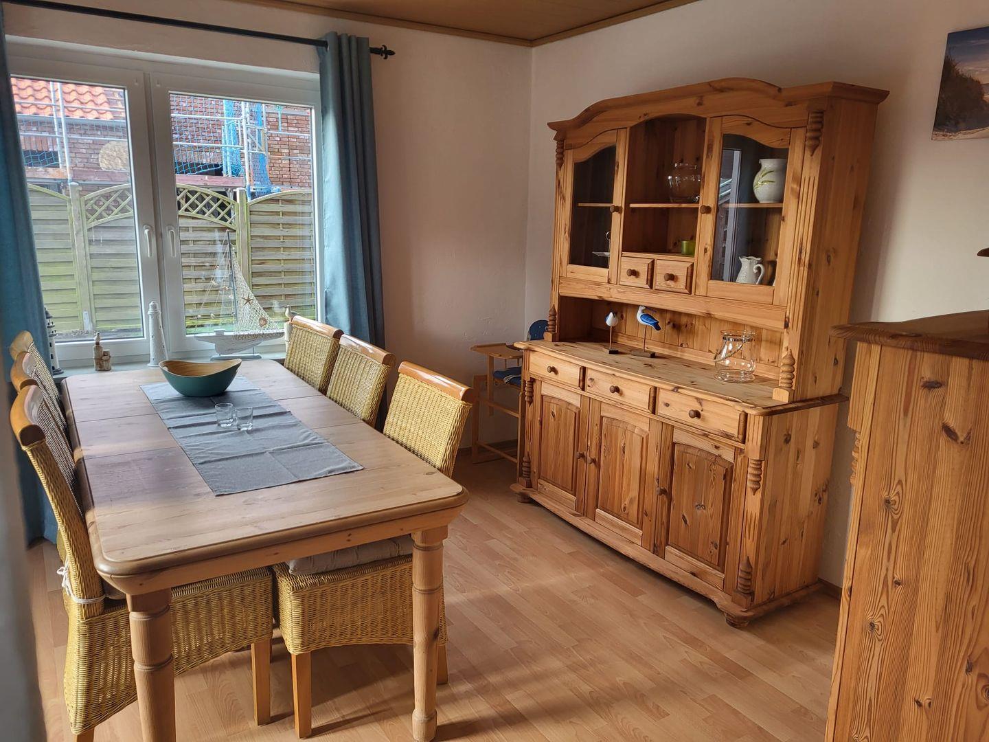 Ebenfalls vom Flur aus erreichen Sie die voll ausgestattete Küche – ein Ort, an dem sich jeder Hobbykoch wohlfühlt. Die zubereiteten Mahlzeiten können im angrenzenden Esszimmer am großen Tisch gemeinsam mit Familie oder Freunden genossen werden. Dieser gemütliche Raum eignet sich auch hervorragend für gesellige Klönabende. Von hier aus gelangen Sie auf eine zweite Terrasse sowie in den großen, eingezäunten Garten.