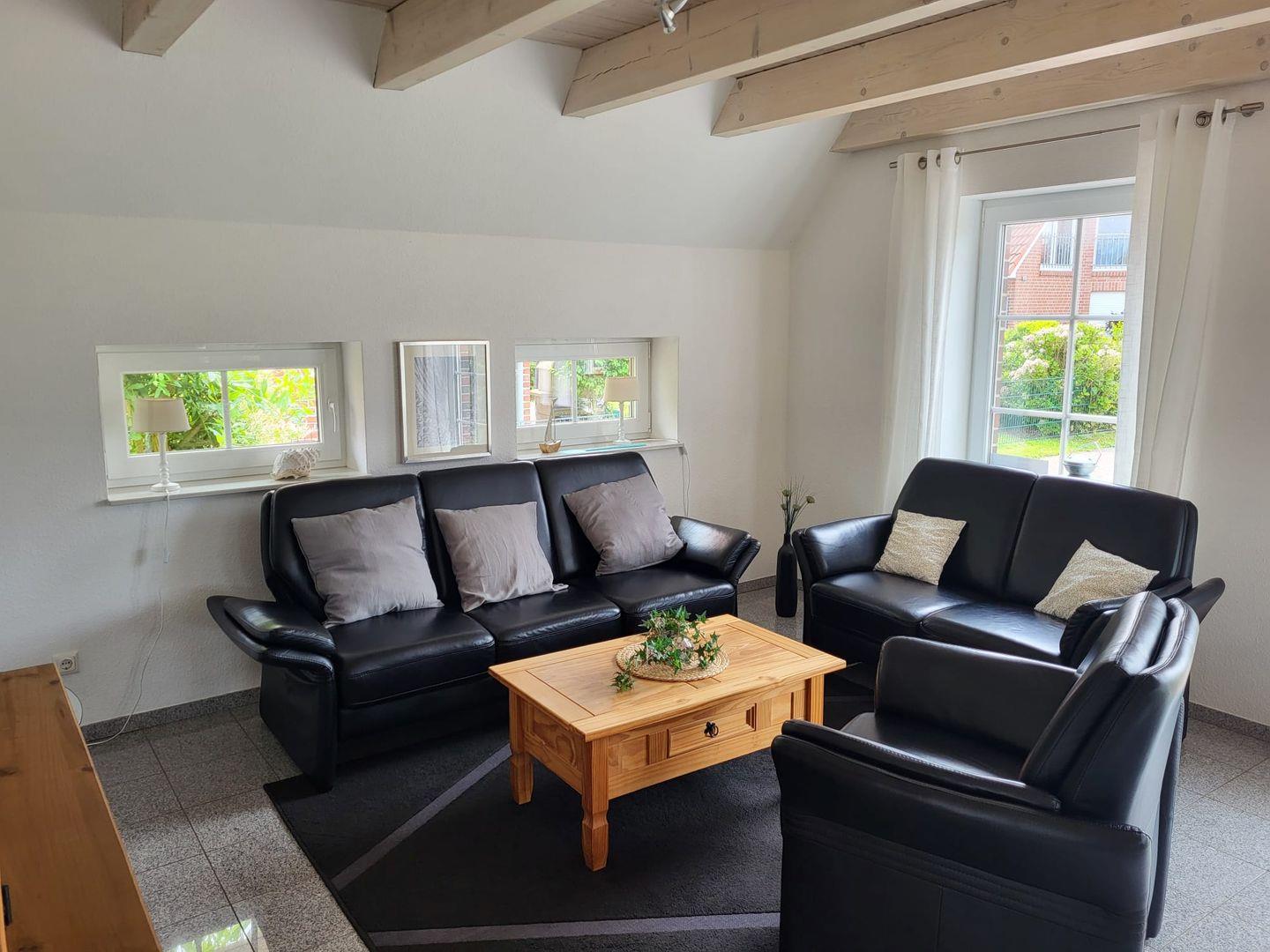 Das Ferienhaus "Spirling" bietet Ihnen und Ihrer Familie viel Platz für bis zu 6 Personen. Im Erdgeschoss finden Sie den hellen modernen Wohn- und Essbereich, von dem aus Sie Zugang zur großen Terrasse und zum Garten haben. Die Ledercouch ist sehr gemütlich. Hier kann man ruhige entspannte Stunden genießen. Ein Flachbild-TV ist vorhanden. Die Küchenzeile ist mit Geschirrspüler und Ceranfeld ausgestattet. Angrenzend steht der Esstisch für 6 Personen. Des Weiteren befindet sich im Erdgeschoss ein Schlafzimmer mit Doppelbett und ein helles Bad mit Dusche und Fußbodenheizung. Ein Abstellraum mit Waschmaschine und Wäschetrockner stehen ebenfalls im unteren Bereich zur Verfügung. Das Obergeschoss bietet Ihnen zwei großzügige helle Schlafzimmer, eines mit Doppelbett und das andere mit 2 Einzelbetten. Hier befindet sich auch das zweite Duschbad. Die möblierte Terrasse mit Strandkorb lädt zum Relaxen und frische Nordseeluft schnuppern ein.