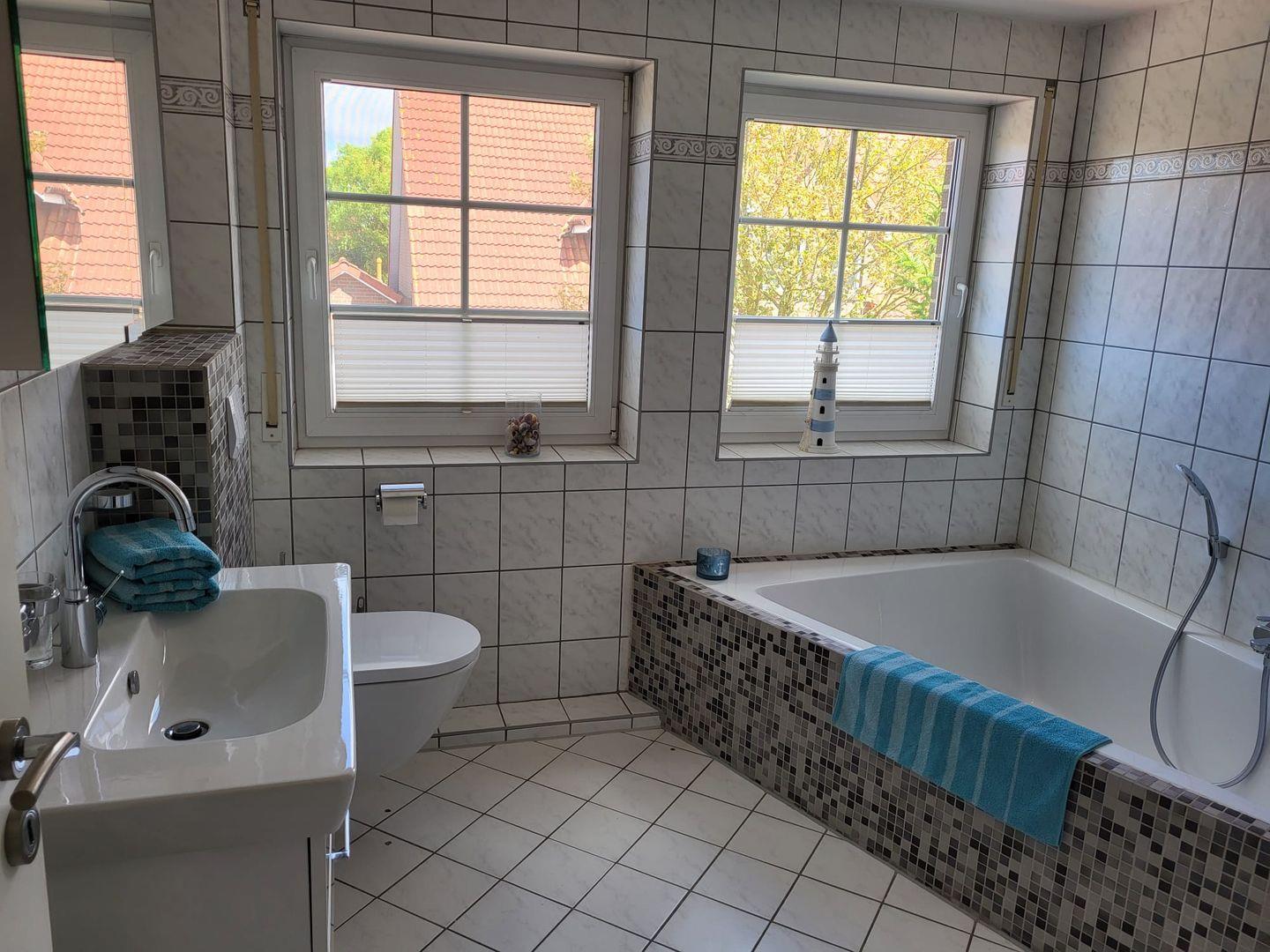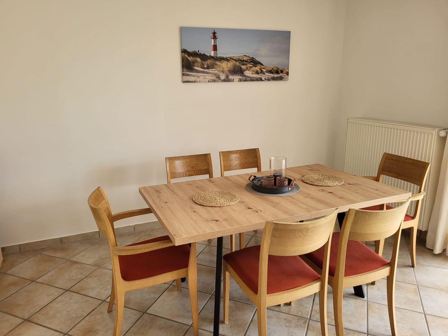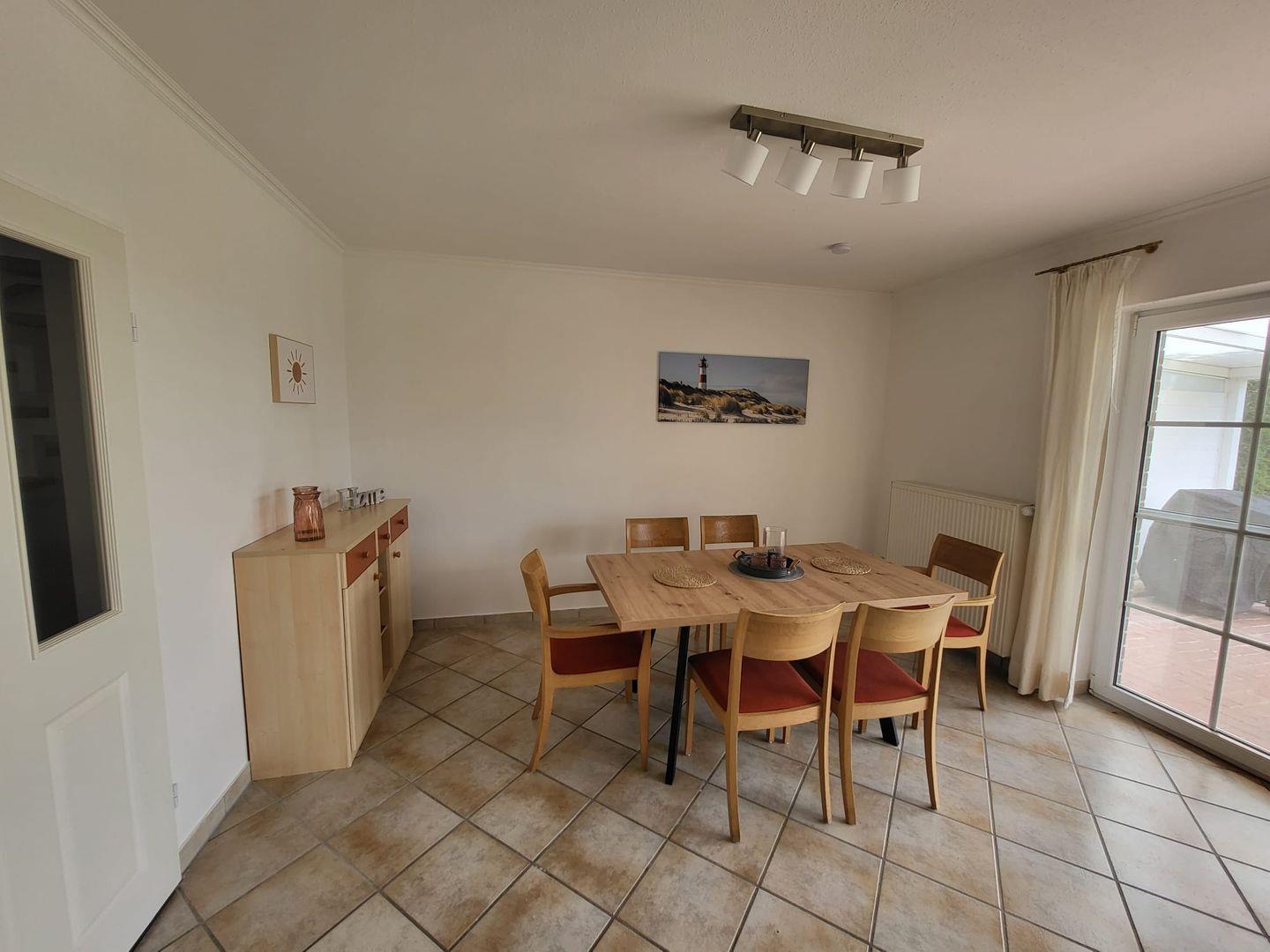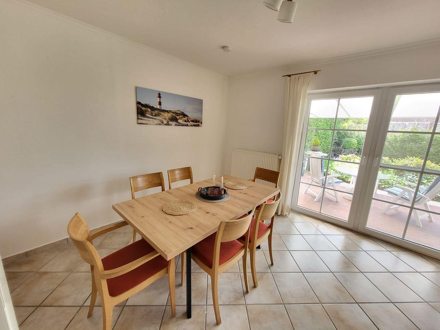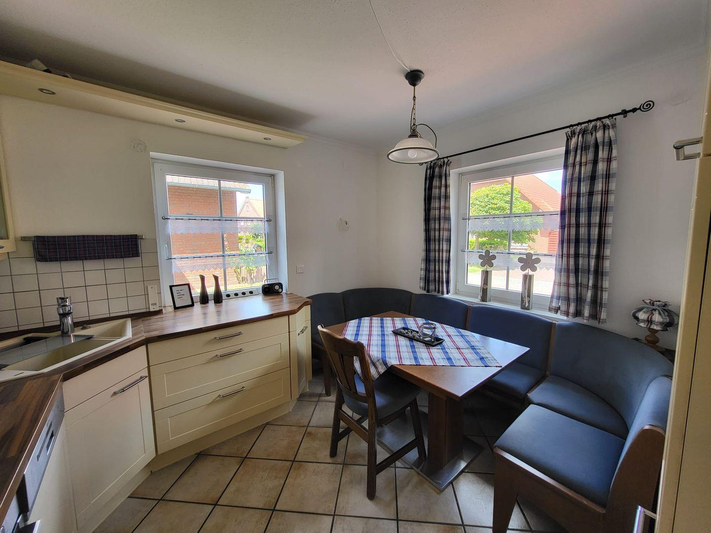 Moin und herzlich Willkommen im Haus Nordstern. Die großzügige Doppelhaushälfte bietet Platz für bis zu 4 Erwachsene und 2 Kinder. Vom Flur gelangen Sie in die helle Küche. Bereiten Sie in der großen Einbauküche leckere Gerichte zu und servieren Sie diese am Esstisch mit gemütlicher Eckbank. Der geräumige Wohn- und Essbereich lädt zum Entspannen ein. Auf der gemütlichen Couch können Sie fernsehen und relaxen. Die Esstischgruppe ist ideal für Klön- oder Spieleabende geeignet. Vom Wohnbereich haben Sie einen schönen Blick auf die Terrasse und in den Garten. Auf der geschützten überdachten Terrasse kann man auch bei nicht so schönen Wetter die frische Nordseeluft genießen und wunderbar grillen. Ein Abstellraum mit Durchgang zur Garage und ein Gäste-WC komplettieren das Erdgeschoss. Die Treppe rauf liegen die 3 hellen Schlafzimmer. Die Böden sind mit Vinyl ausgelegt. Im ersten Schlafzimmer mit Doppelbett finden Sie den wohlverdienten Schlaf. Das zweite Zimmer ist mit 2 Einzelbetten und das dritte mit einem Etagenbett ausgestattet. Von beiden Räumen haben Sie Zugang zu einem Balkon, wo man ebenfalls die Sonne genießen kann. Ein großes Badezimmer mit Dusche und Eckbadewanne rundet das Obergeschoß ab. Alle Fenster sind mit Außenrollos ausgestattet. WLAN ist verfügbar. Die Garage kann zum Unterbringen der mitgebrachten Fahrräder benutzt werden. Das Haus verfügt über 2 Parkplätze. Haustiere sind nicht erlaubt!