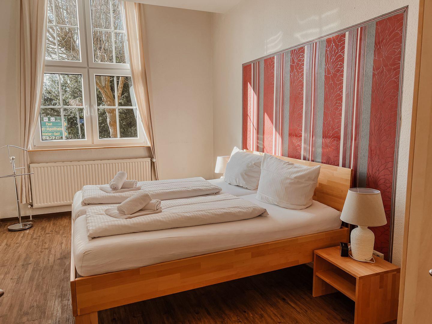 Die Ferienwohnung verfügt über zwei komfortable Schlafzimmer, die Ihnen erholsamen Schlaf garantieren. Das kompakte Badezimmer bietet eine große Dusche. Selbstverständlich stehen Ihnen frische Handtücher und Bettwäsche zur Verfügung. Zusätzlich gibt es ein Gäste-WC, das besonders praktisch für Familien ist.