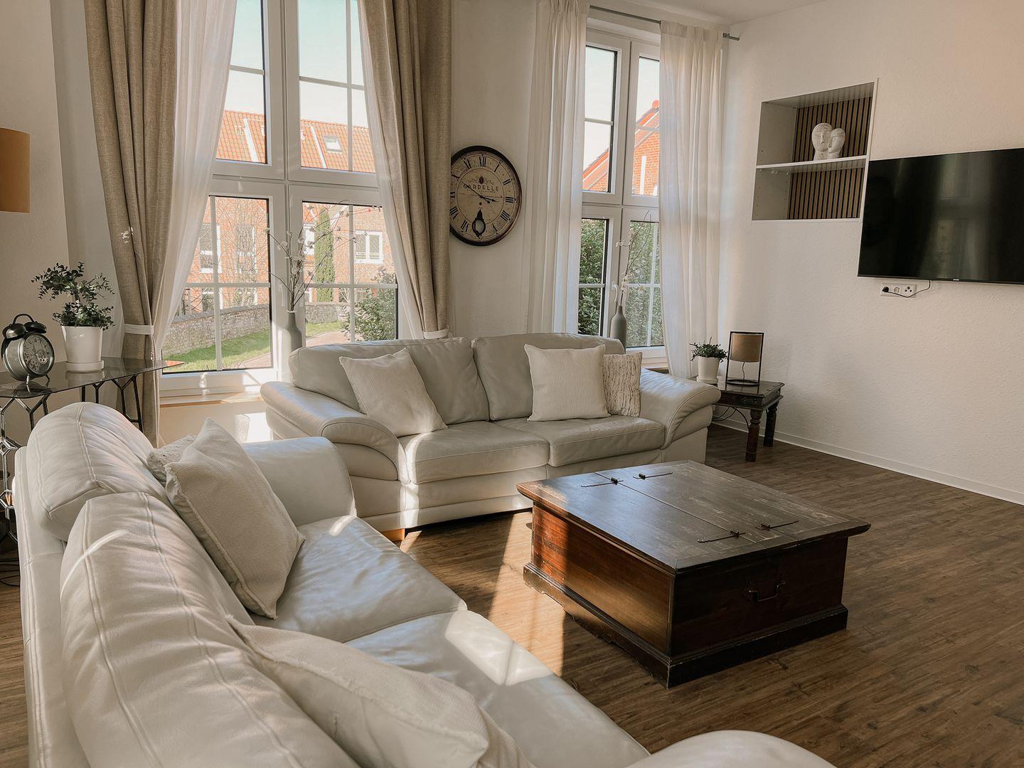 Greetsiel selbst ist für seine historische Atmosphäre und seine Nähe zur Nordsee bekannt. Der Strand, der nur 20 km entfernt ist, lädt zu langen Tagen am Meer ein. Hier können Sie nicht nur entspannen, sondern auch aktiv werden, sei es beim Schwimmen, Sandburgen bauen oder beim Erkunden der Umgebung mit dem Fahrrad.