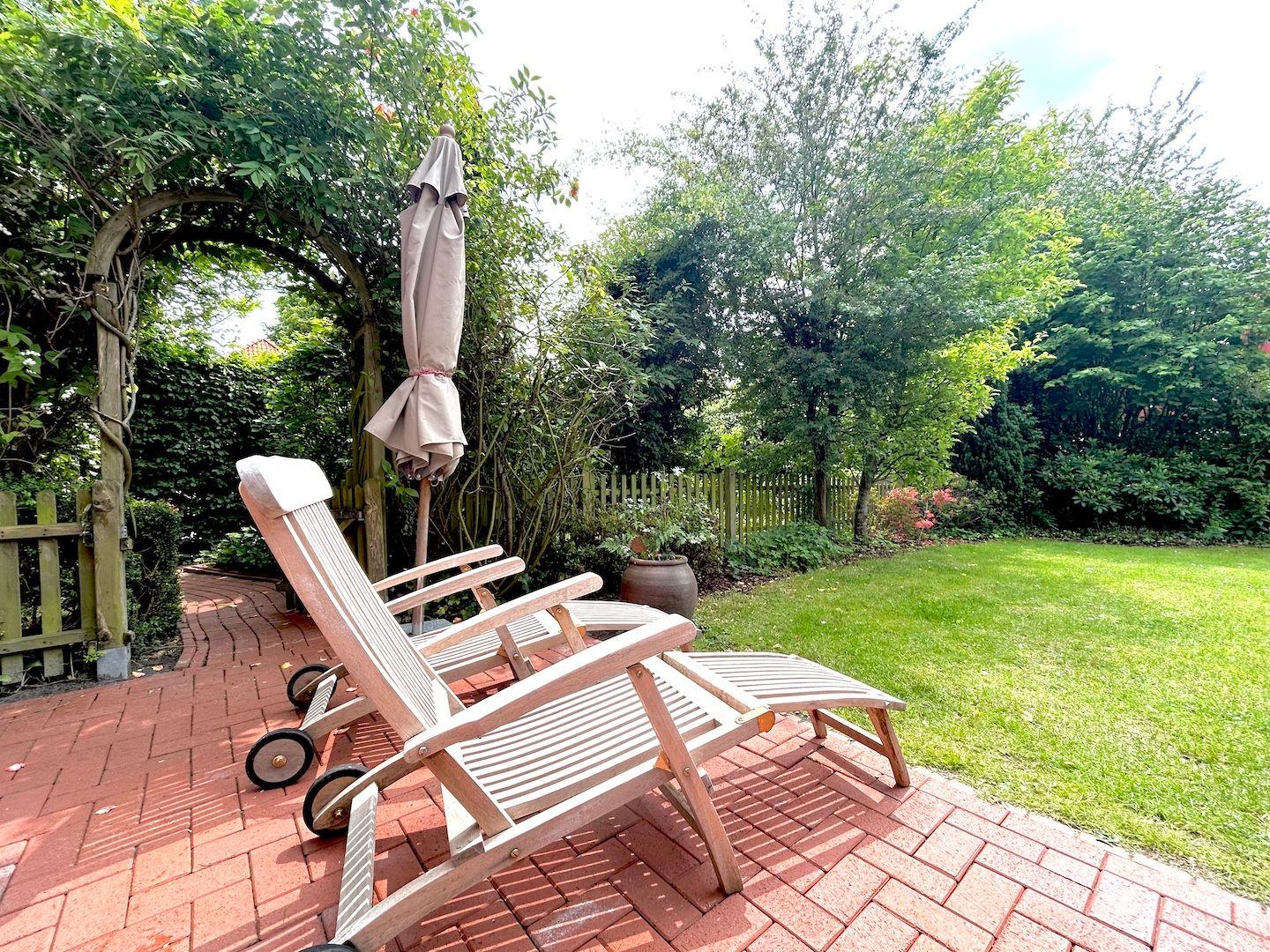 Der idyllische Garten mit seiner Sonnenterrasse ist ein ruhiger und intimer Rückzugsort, den unsere Gäste sehr genießen. Hier kann man frühstücken, auf den Sonnenliegen entspannen oder den Abend ausklingen lassen - so gelingt der perfekte Urlaub.
