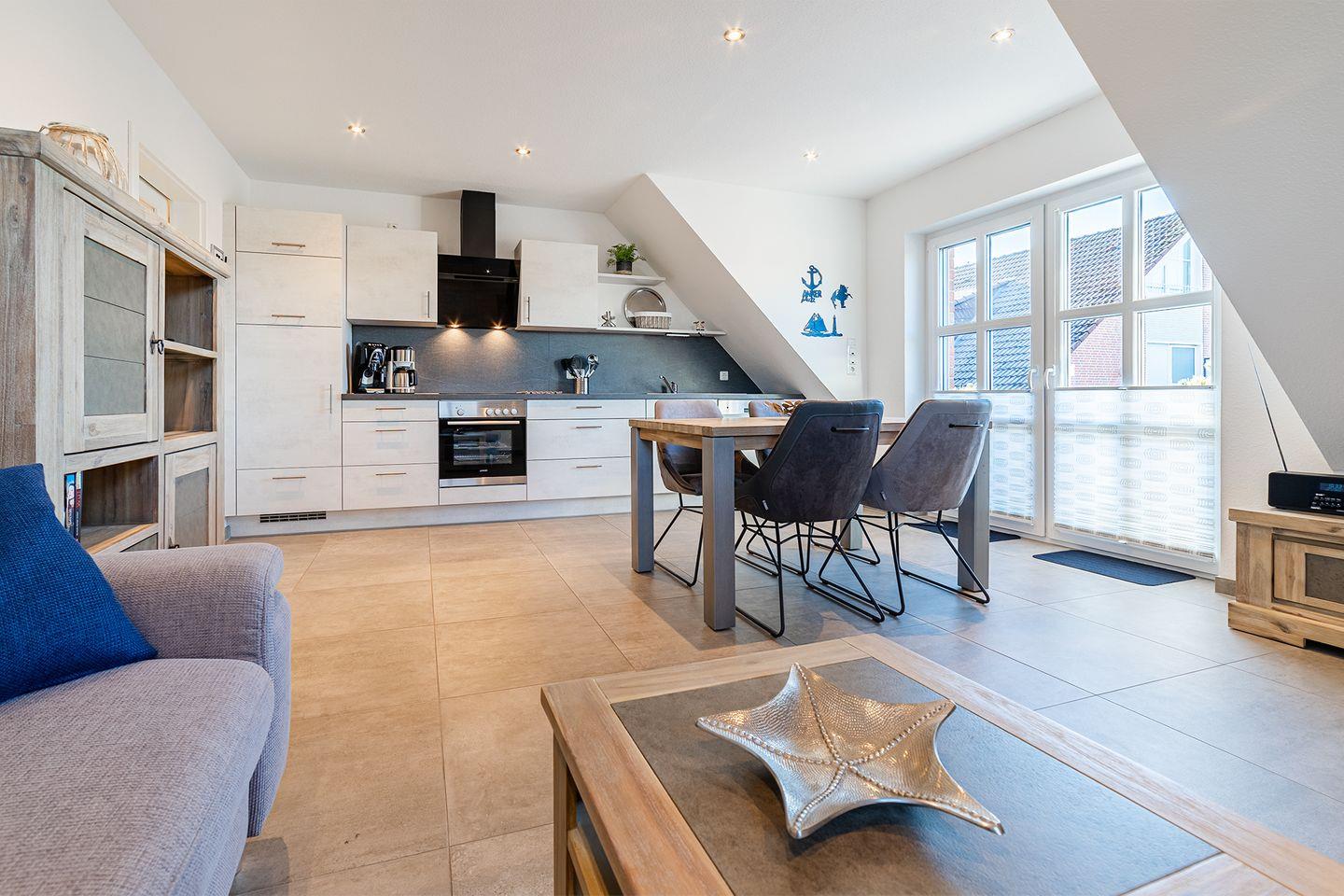 Stilvolle 75 m² Ferienwohnung in ruhiger Lage mit Balkon, Gartenhaus und E-Bike-Ladestation in Greetsiel.