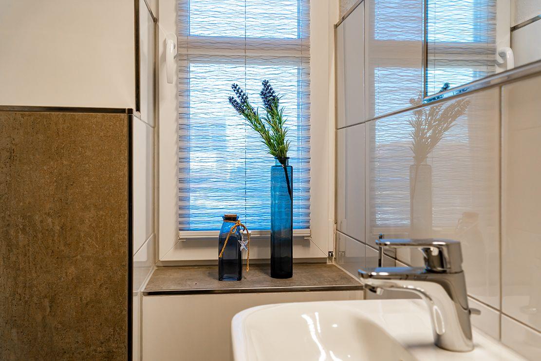 Die Wohnung verfügt über zwei separate Schlafzimmer, die Sie mit ihrem gemütlichen Ambiente und hochwertigen Betten zu erholsamen Nächten einladen. Verdunklungsmöglichkeiten, Plissees und Insektenschutzgitter sorgen dafür, dass Sie ungestört schlafen können.