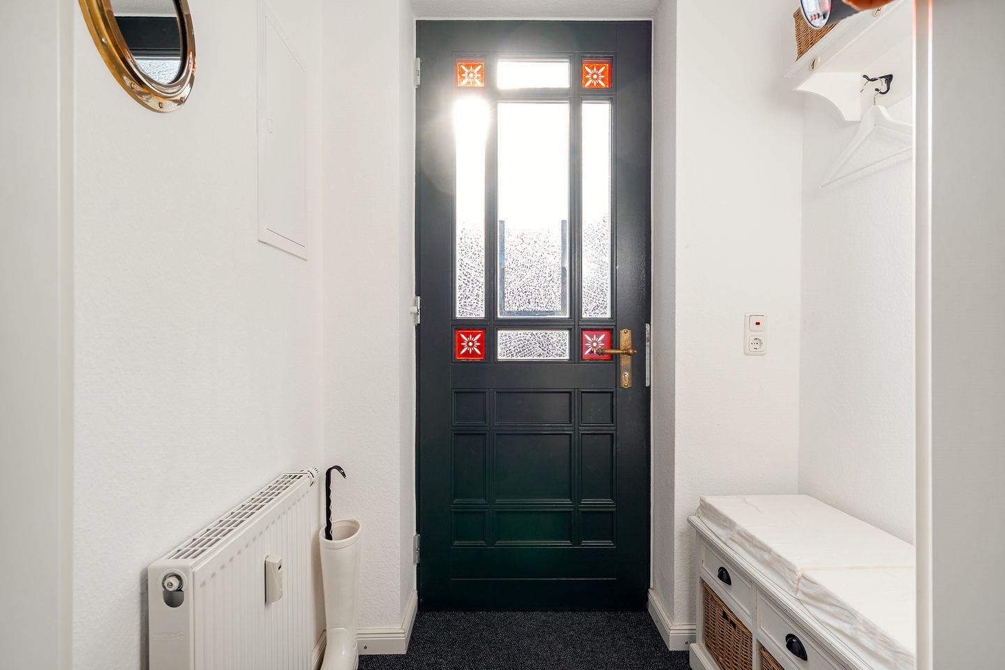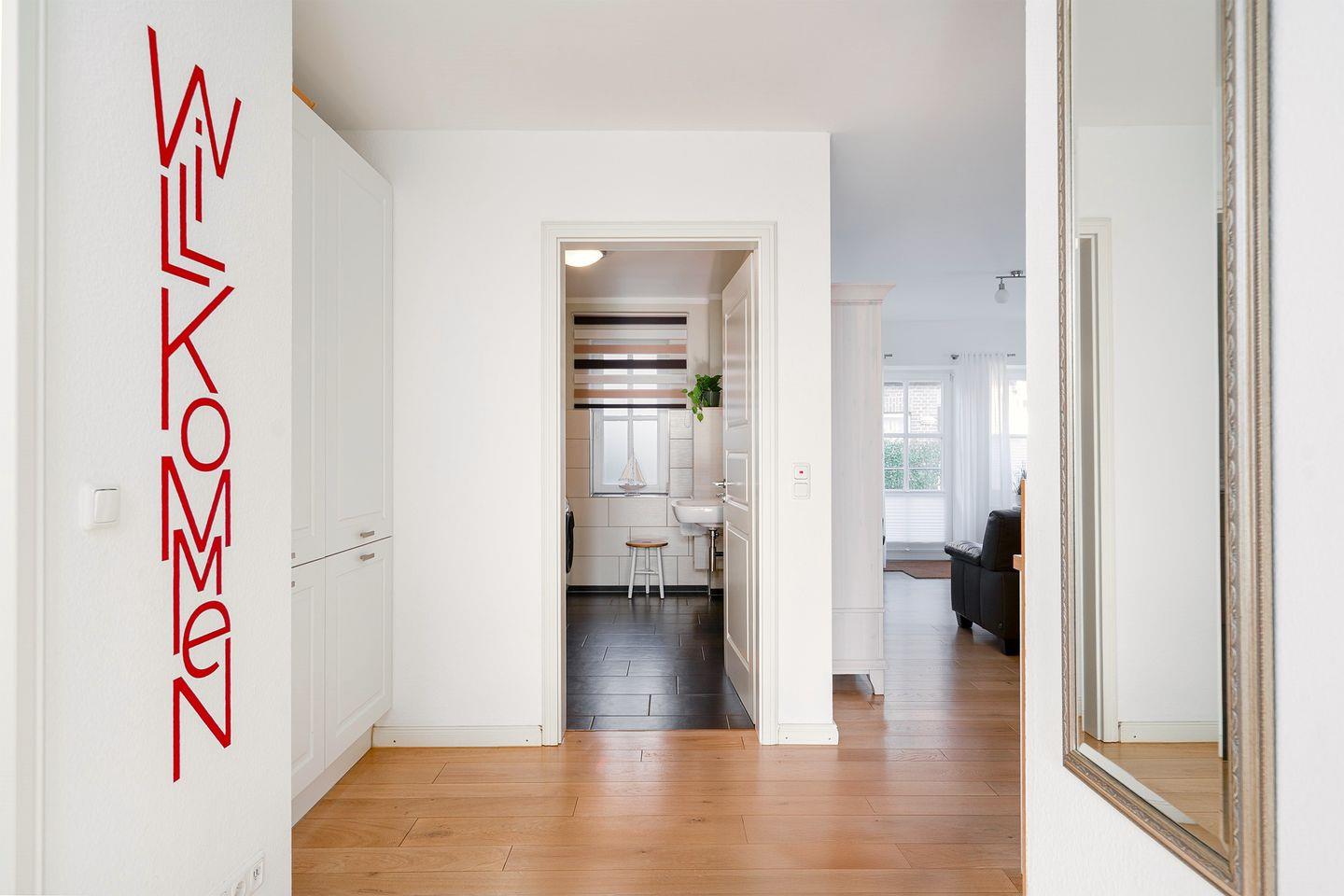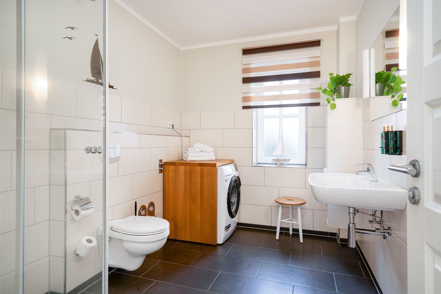 Die Wohnung befindet sich in einem 2011 kernsanierten Haus aus 1788 und liegt in einer ruhigen Seitenstraße, aber dennoch unmittelbar im Ortskern von Greetsiel.