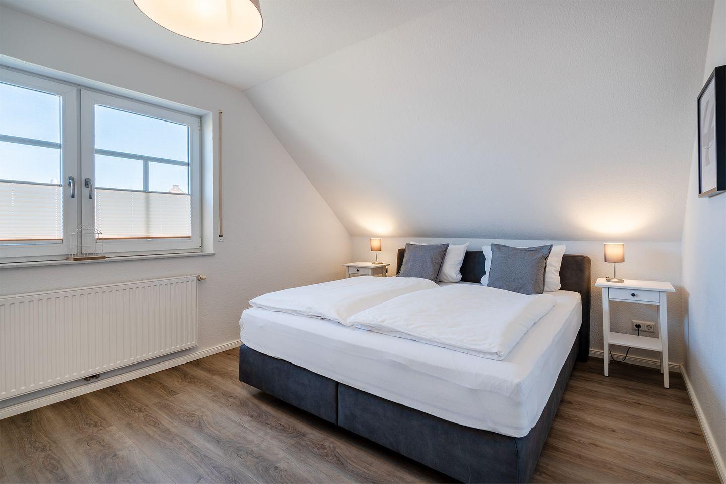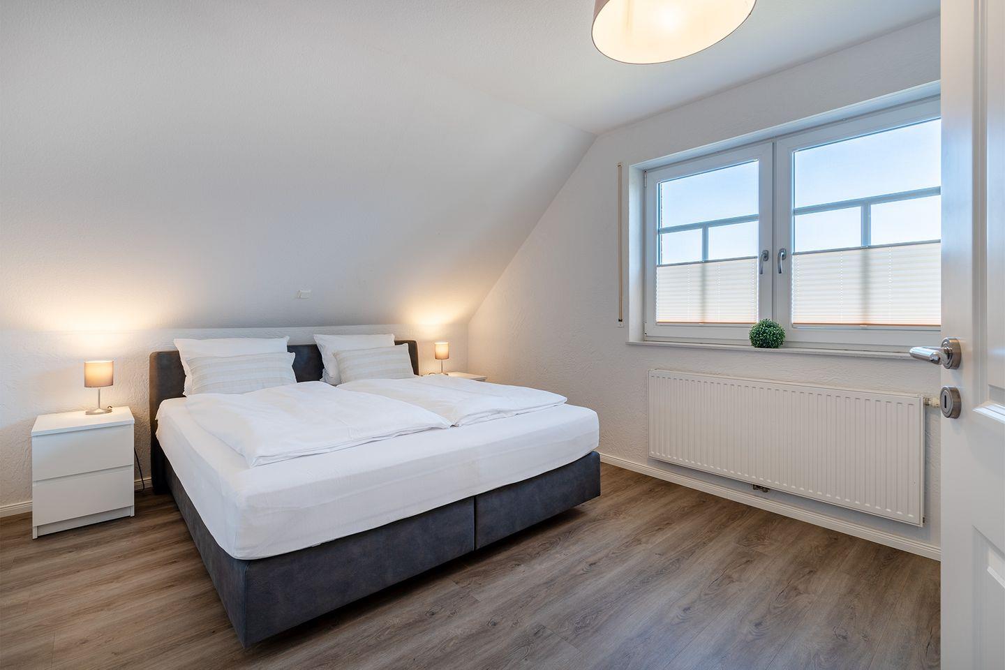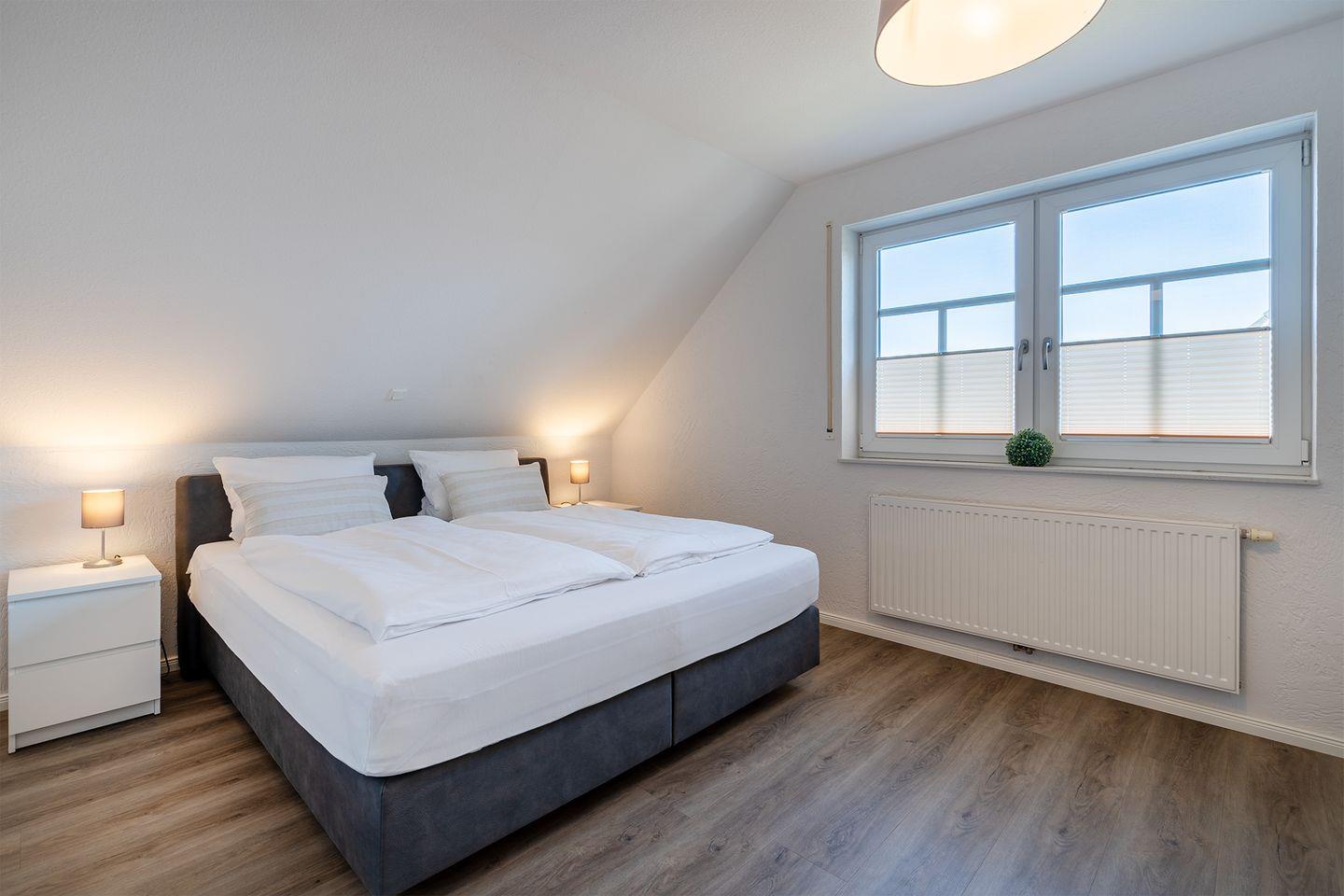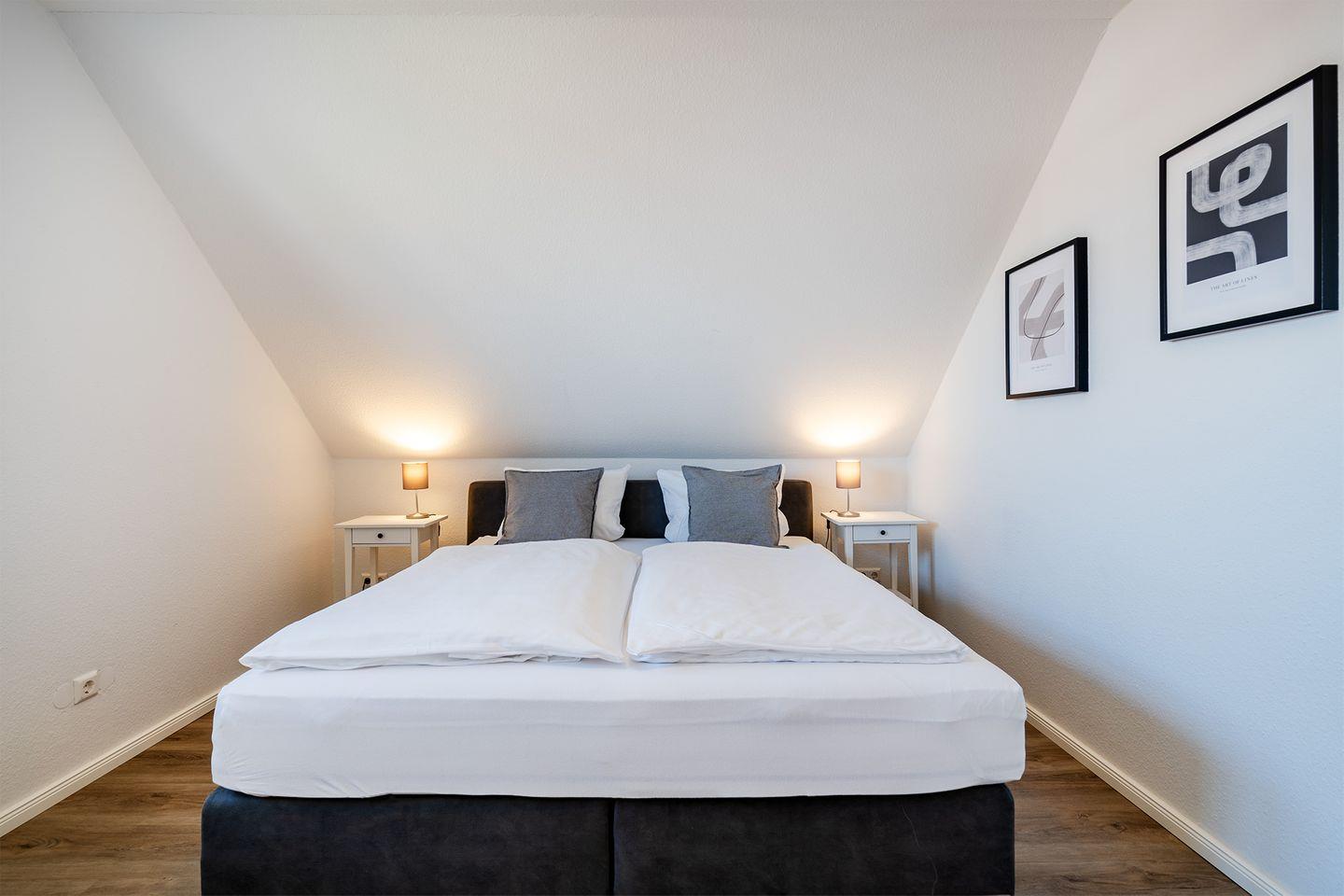 In der oberen Etage befinden sich drei Schlafräume, die alle mit hochwertigen Boxspringbetten ausgestattet sind und für eine erholsame Nachtruhe sorgen.