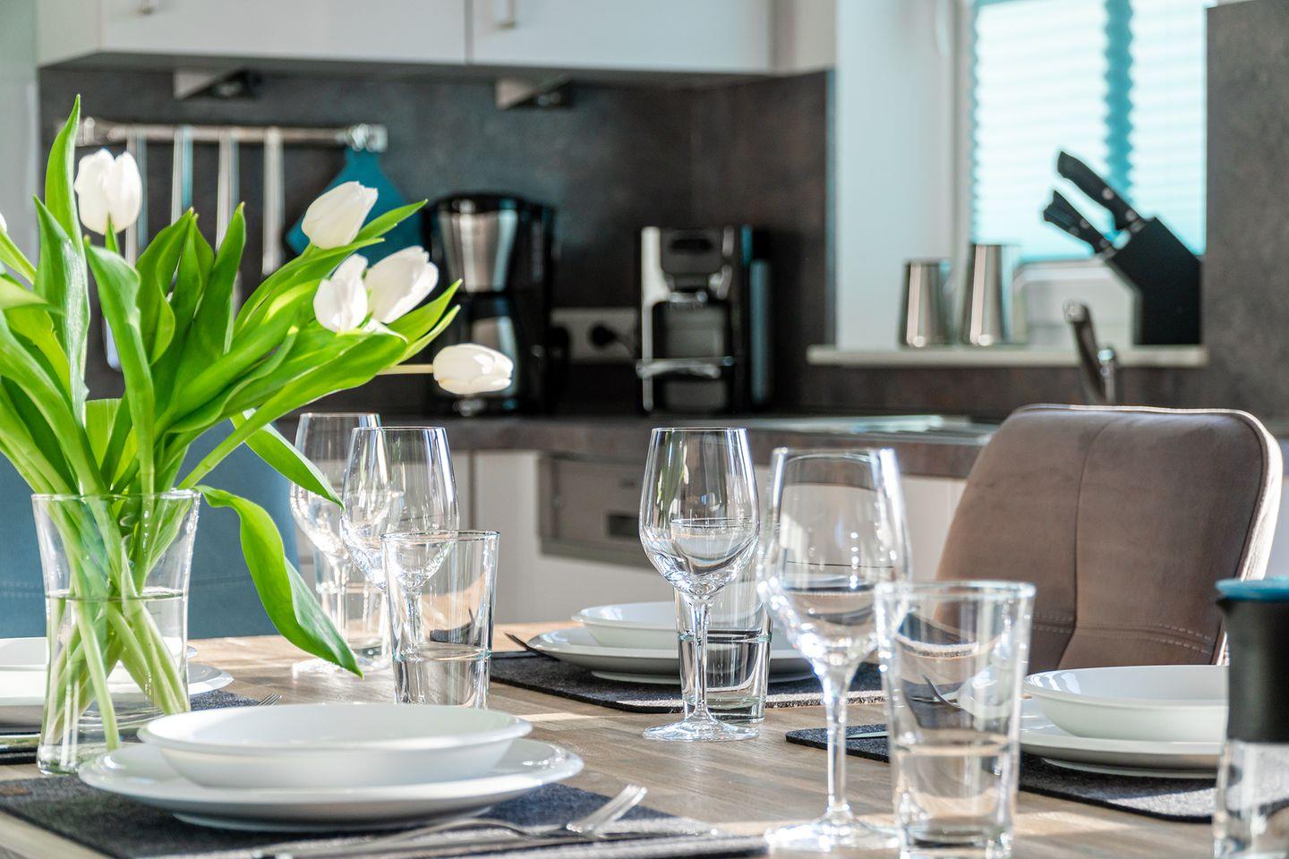 Der große Wohn-Essbereich mit einer integrierten und top ausgestatteten Küche lässt keine Wünsche offen. Hier können Sie in jedem Fall schöne Stunden mit der Familie und Freunden verbringen.