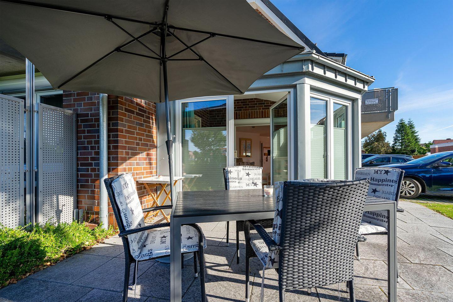 Komfortable Ferienwohnung Elas Nüst mit Terrasse, Parkplatz und Rollstuhlgerecht an der Nordsee.