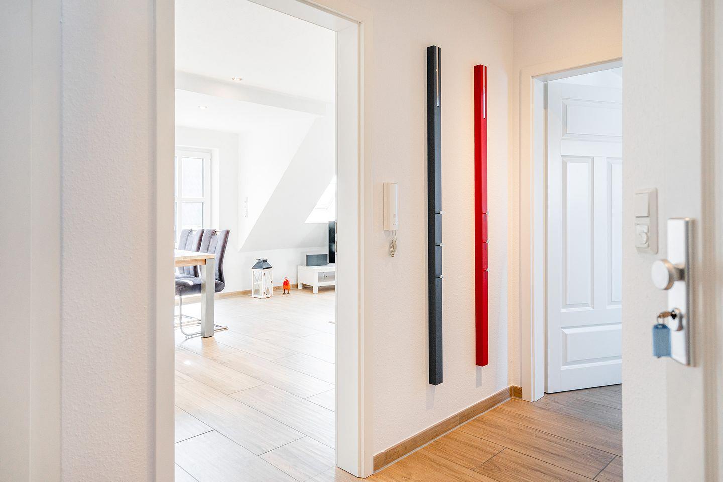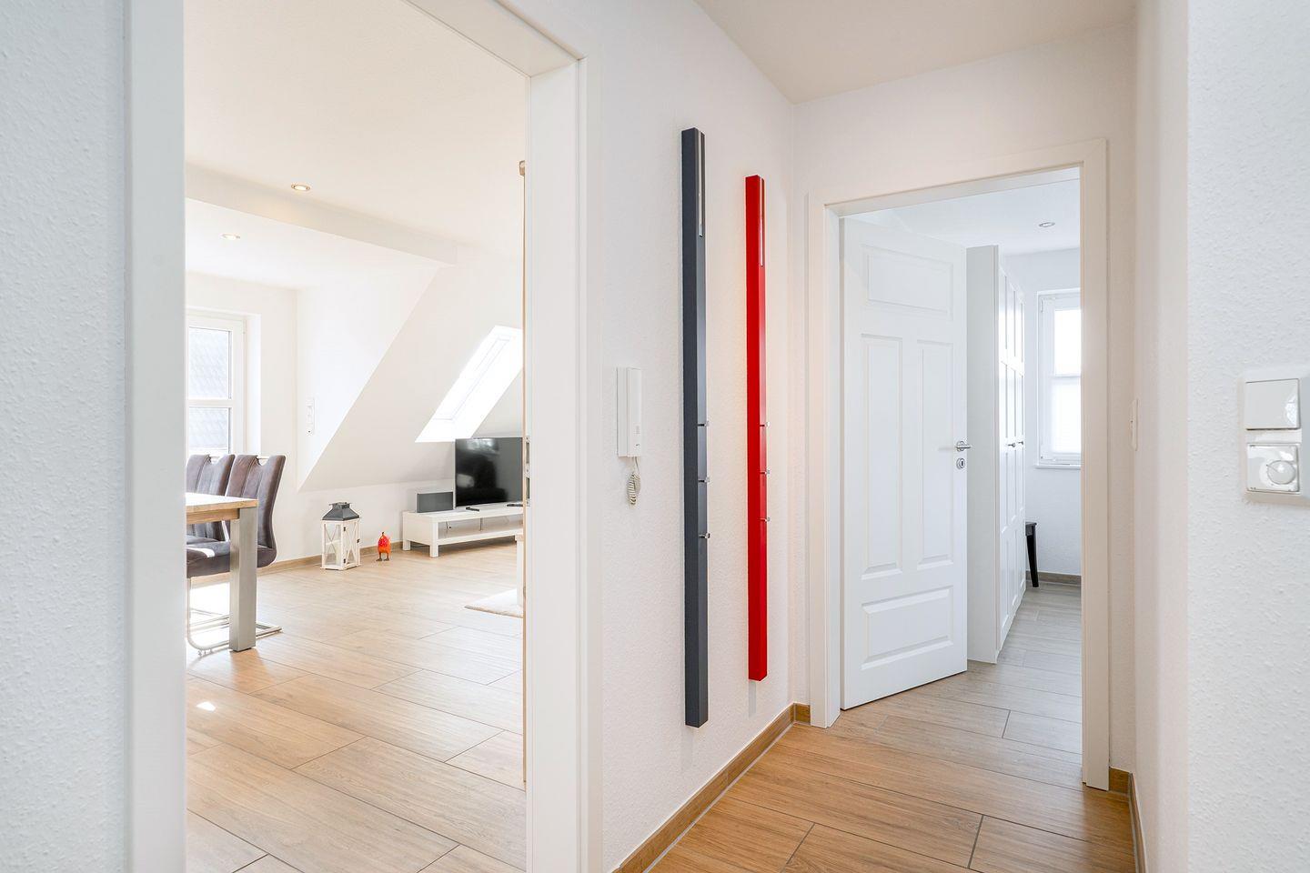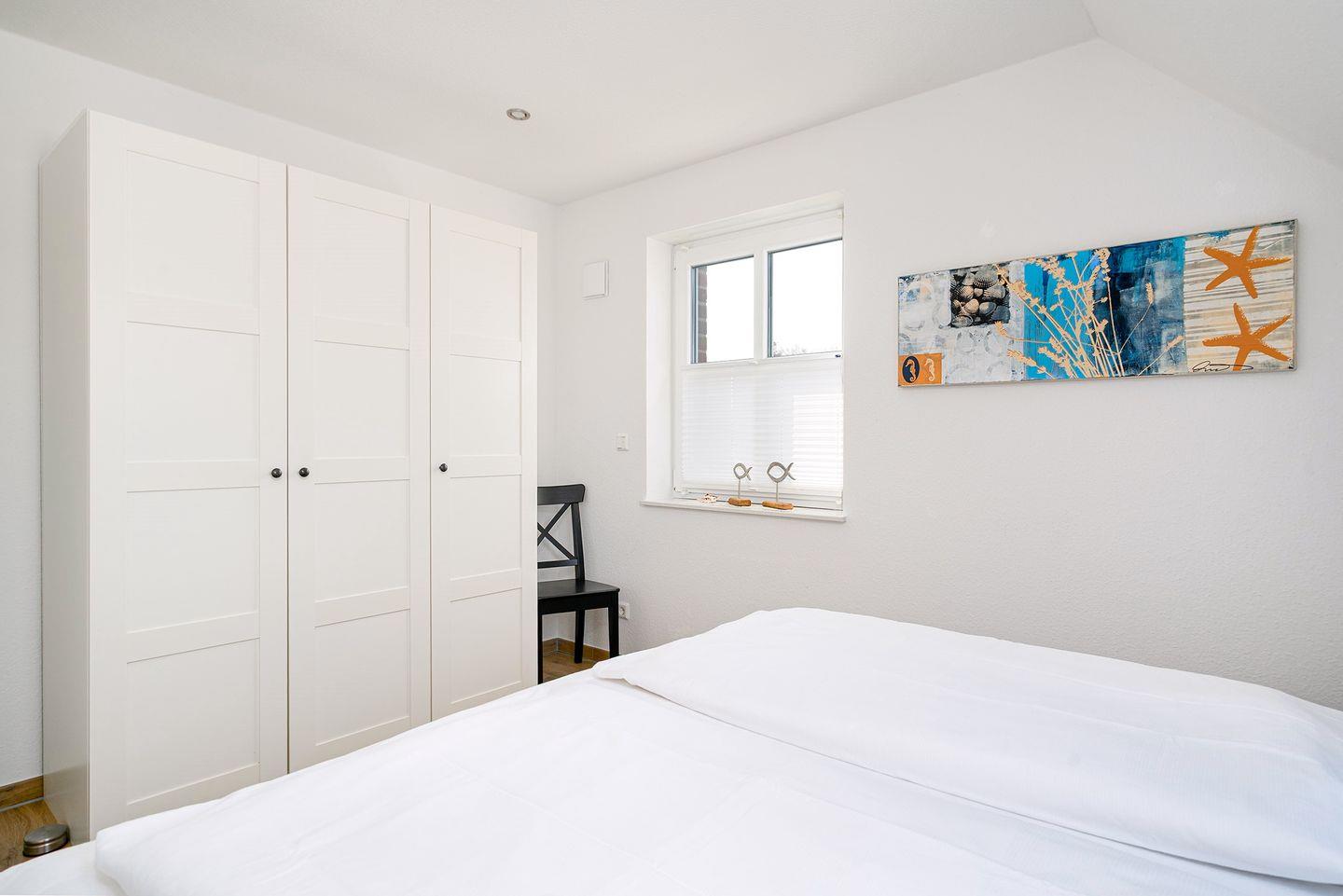 In der Nähe des Hafens und der Ortsmitte befindet sich in einer ruhigen Lage am Ende einer Sackgasse unsere 2016 neu erbaute OG-Ferienwohnung. Sie verfügt über 1 Schlafzimmer, 1 Wohnzimmer mit offenem Ess-/Küchenbereich sowie 1 Duschbad. Vor dem Ferienhaus befindet sich ein für Sie reservierter PKW-Einstellplatz. In einem eigens dafür vorgesehenen Abstellraum halten wir Ihnen zwei Stellplätze für Ihre Fahrräder frei.