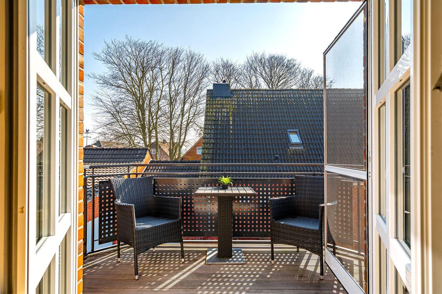 Hochwertige Ferienwohnung im Obergeschoss mit Balkon und zusätzlichem Wohnraum (Fernseh-/Leseraum) im Studio. Kostenfreies WLAN. Ruhe und Erholung in Hafennähe.