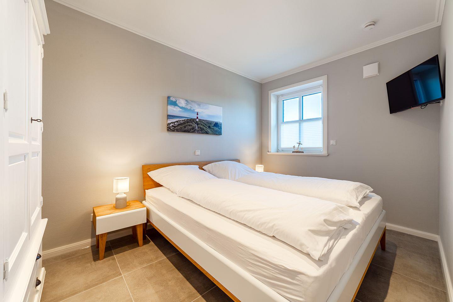 Schlafzimmer mit Doppelbett (180x200 cm) und TV im EG