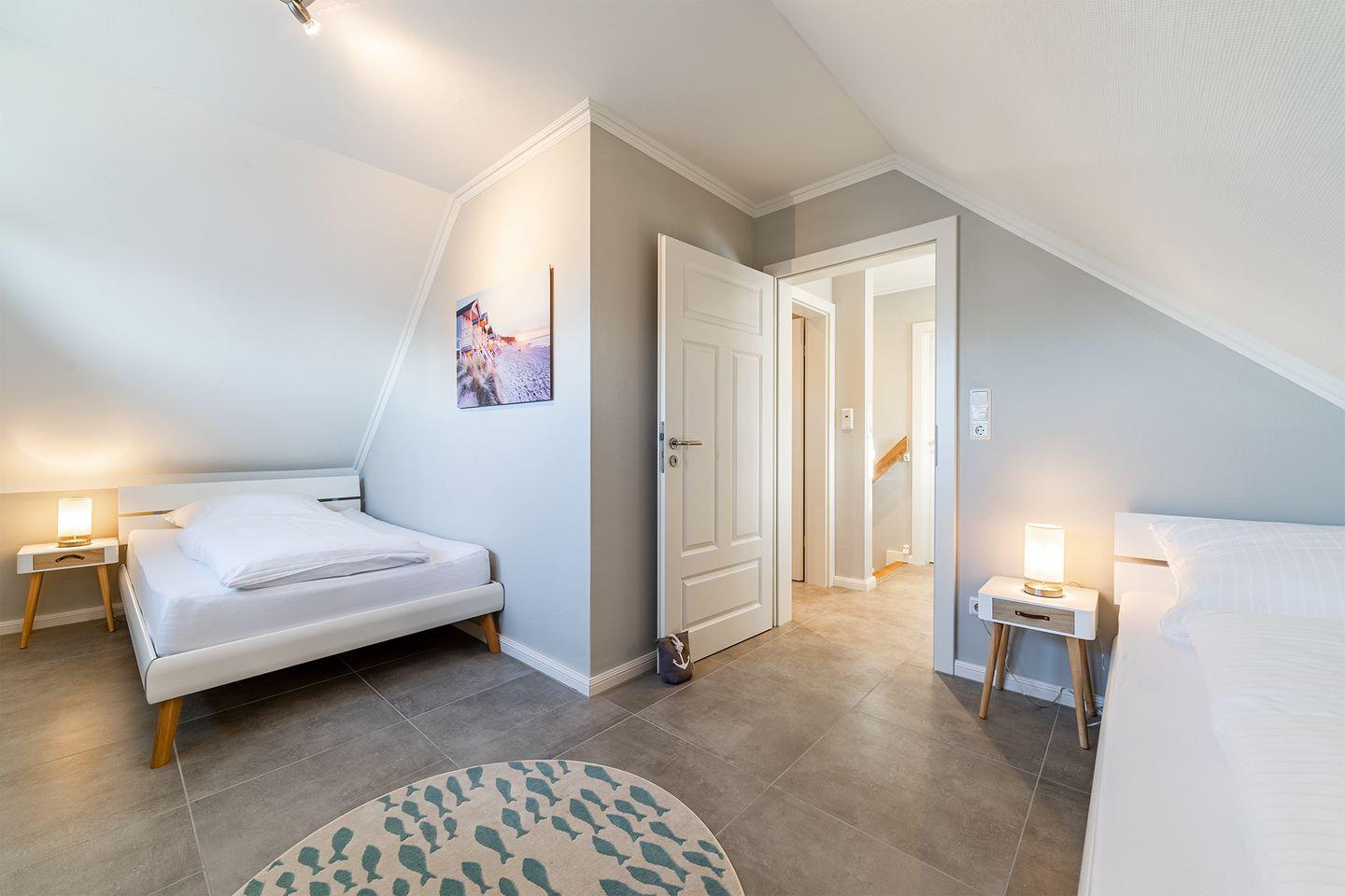 Schlafzimmer mit zwei Einzelbetten (90x200 cm + 120x200 cm) im OG