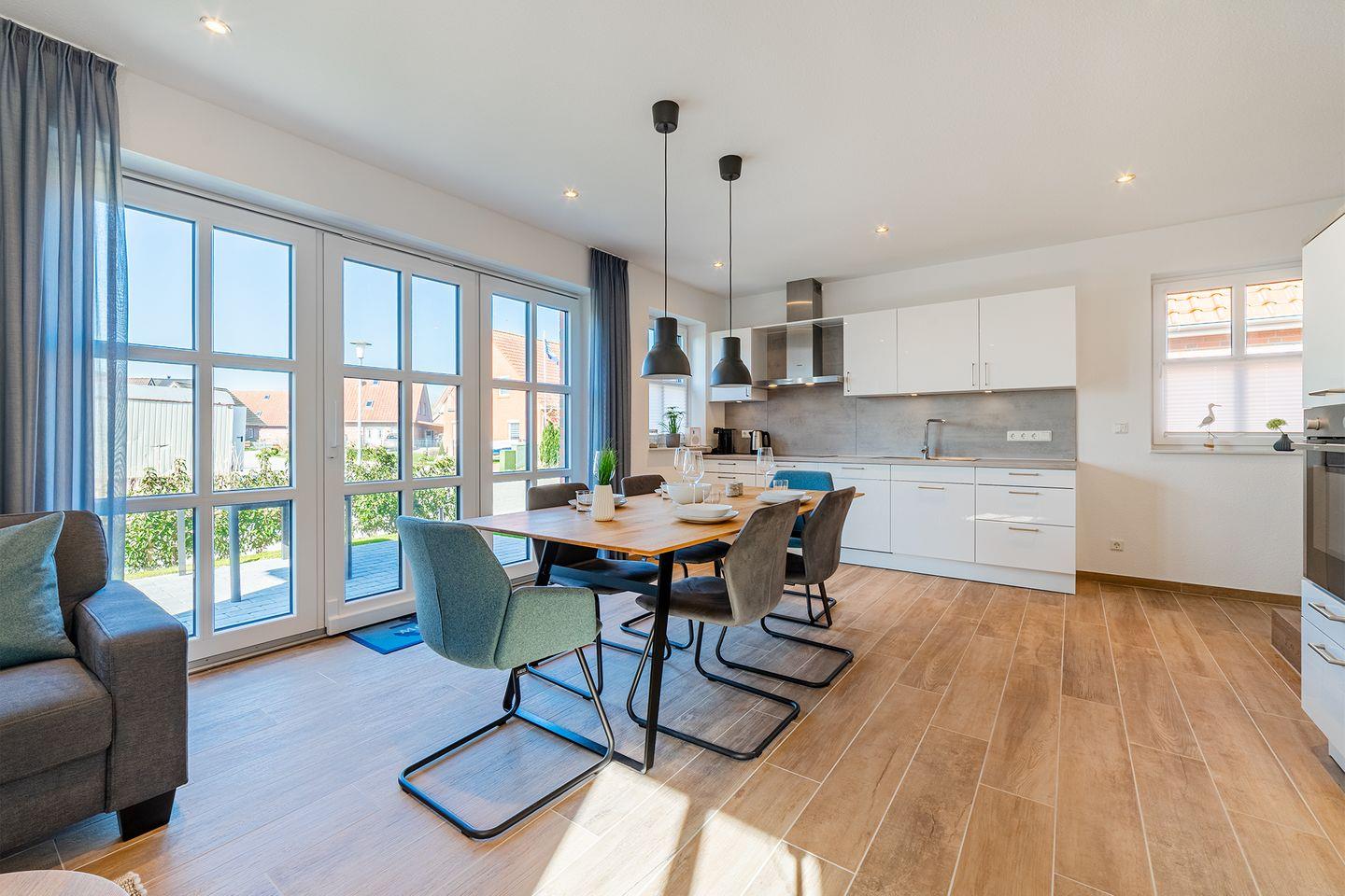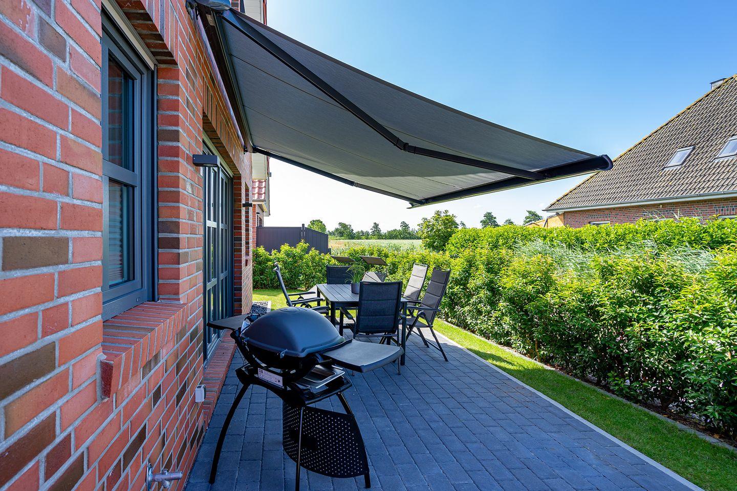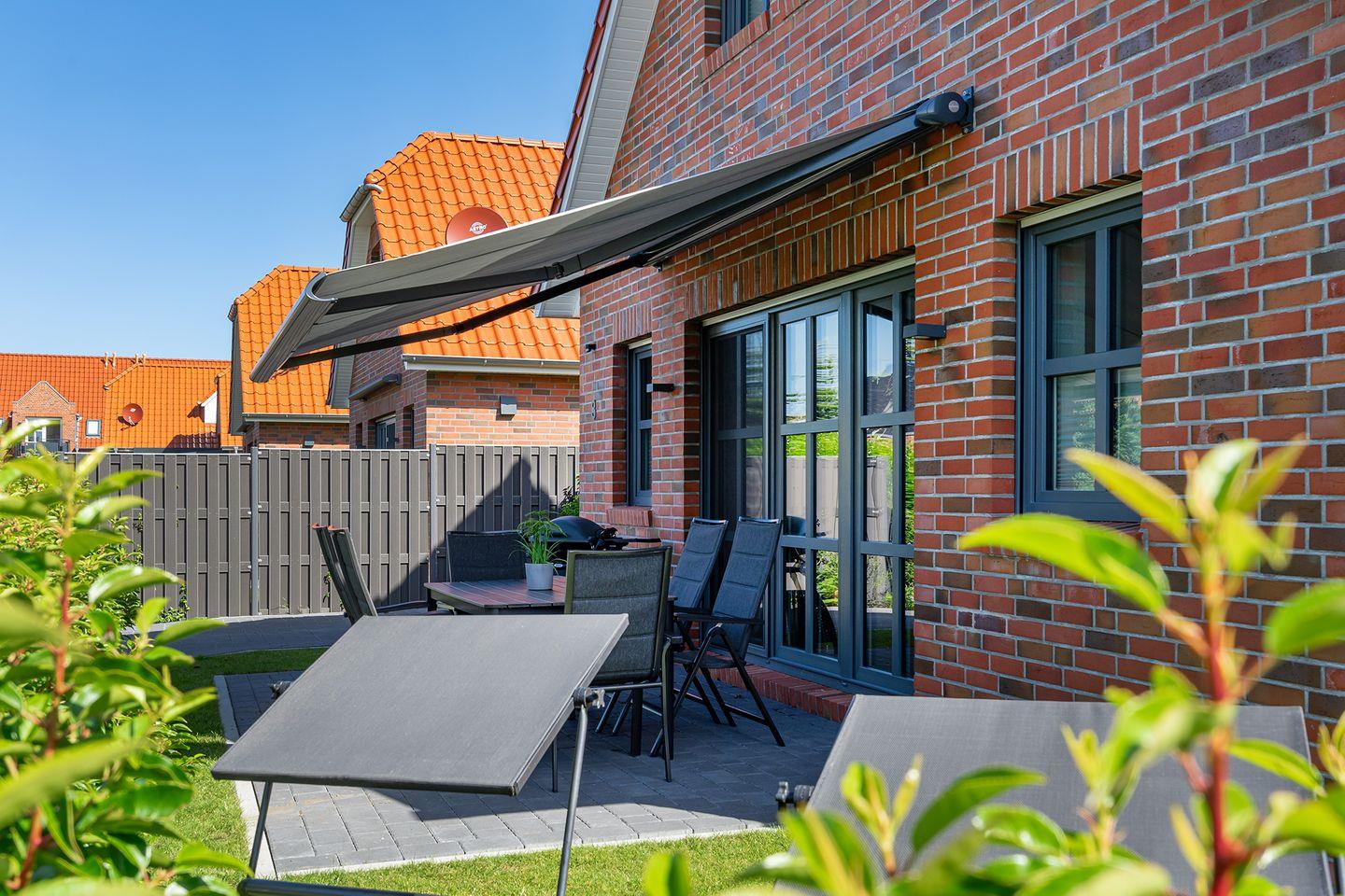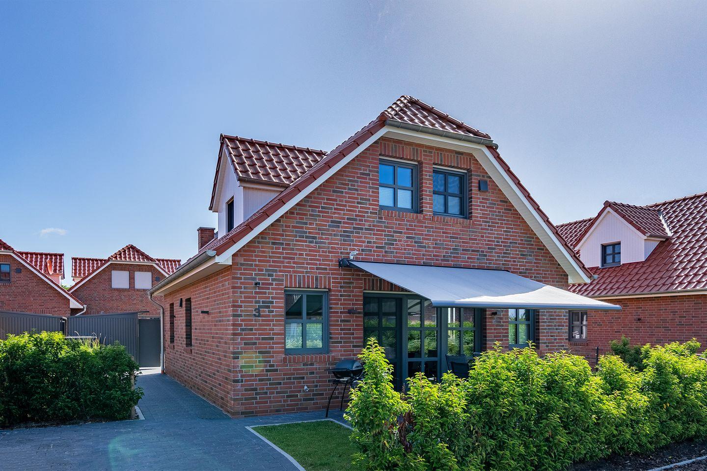 Modernes Friesenhaus "Fischers Fritz" in Greetsiel mit Garten, Terrasse und hochwertiger Ausstattung für einen entspannten Nordseeurlaub.