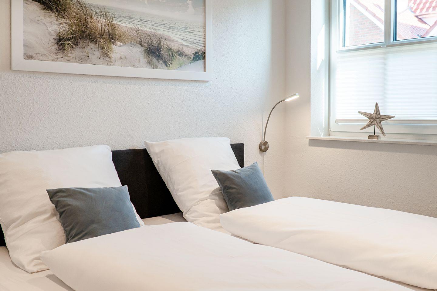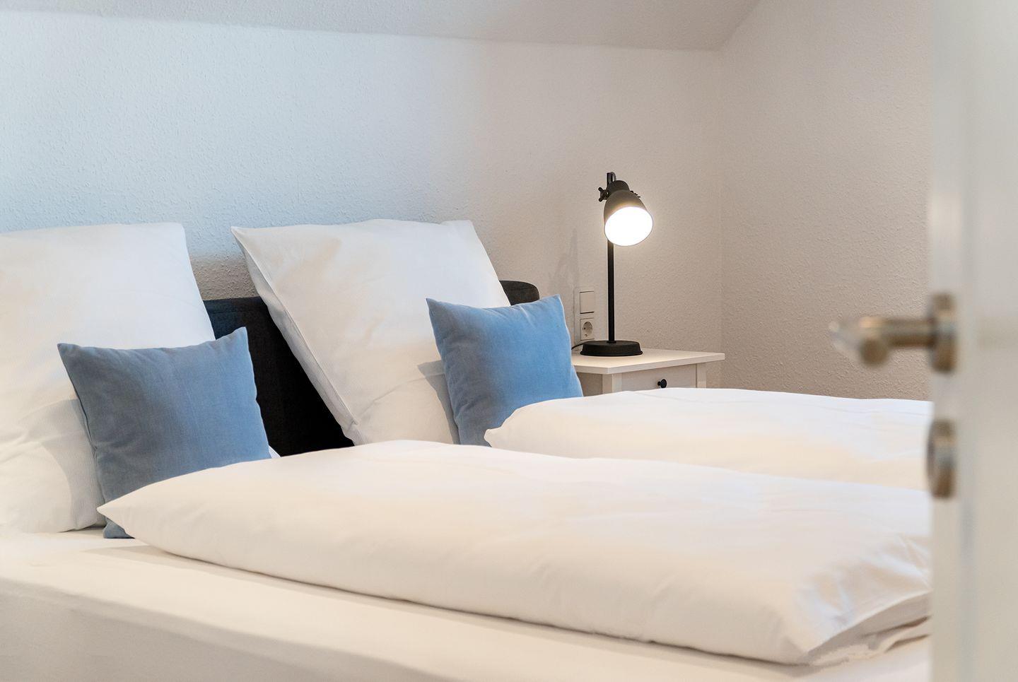 Schlafzimmer mit zwei Einzelbetten (90x200 cm und 90x190 cm) im OG