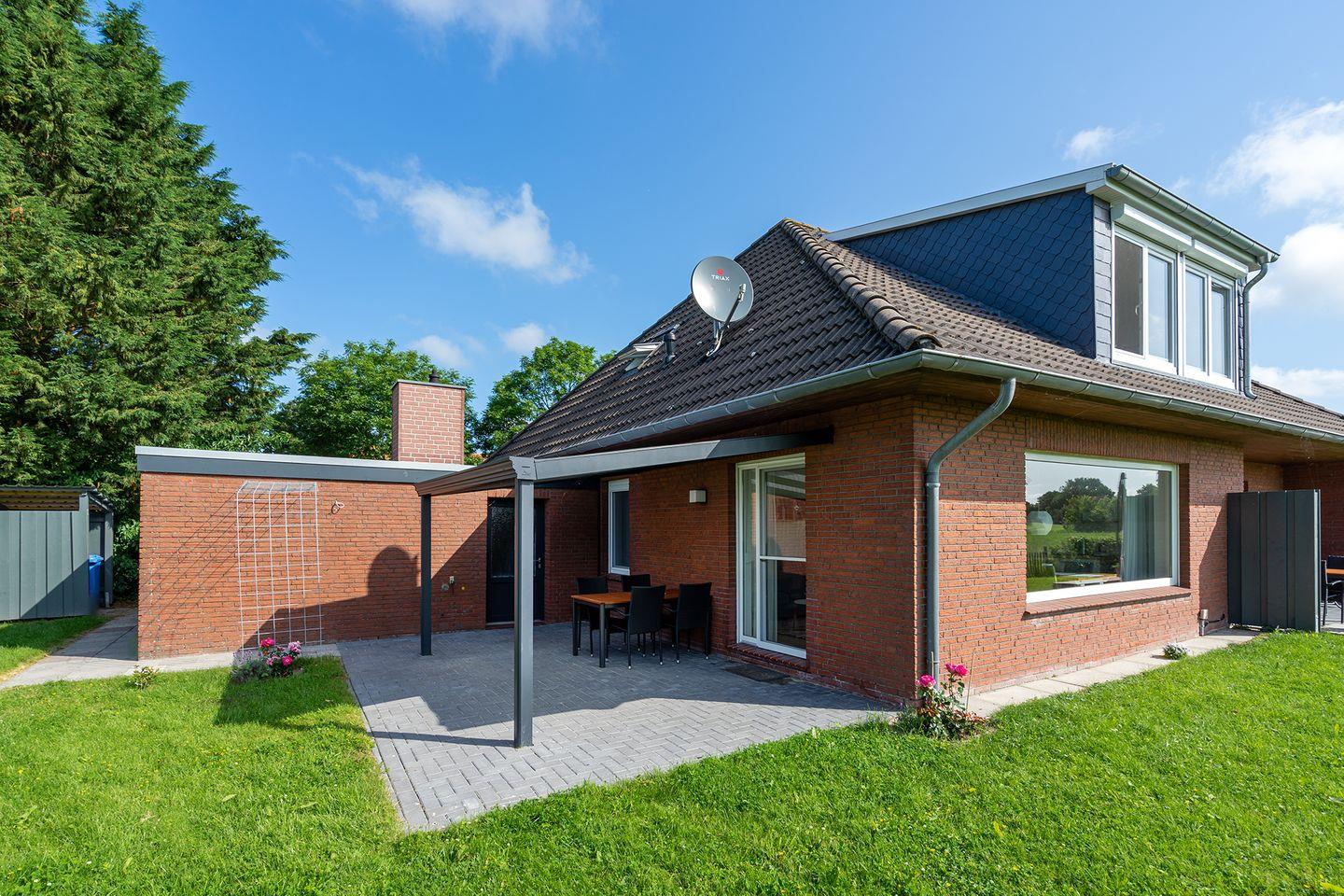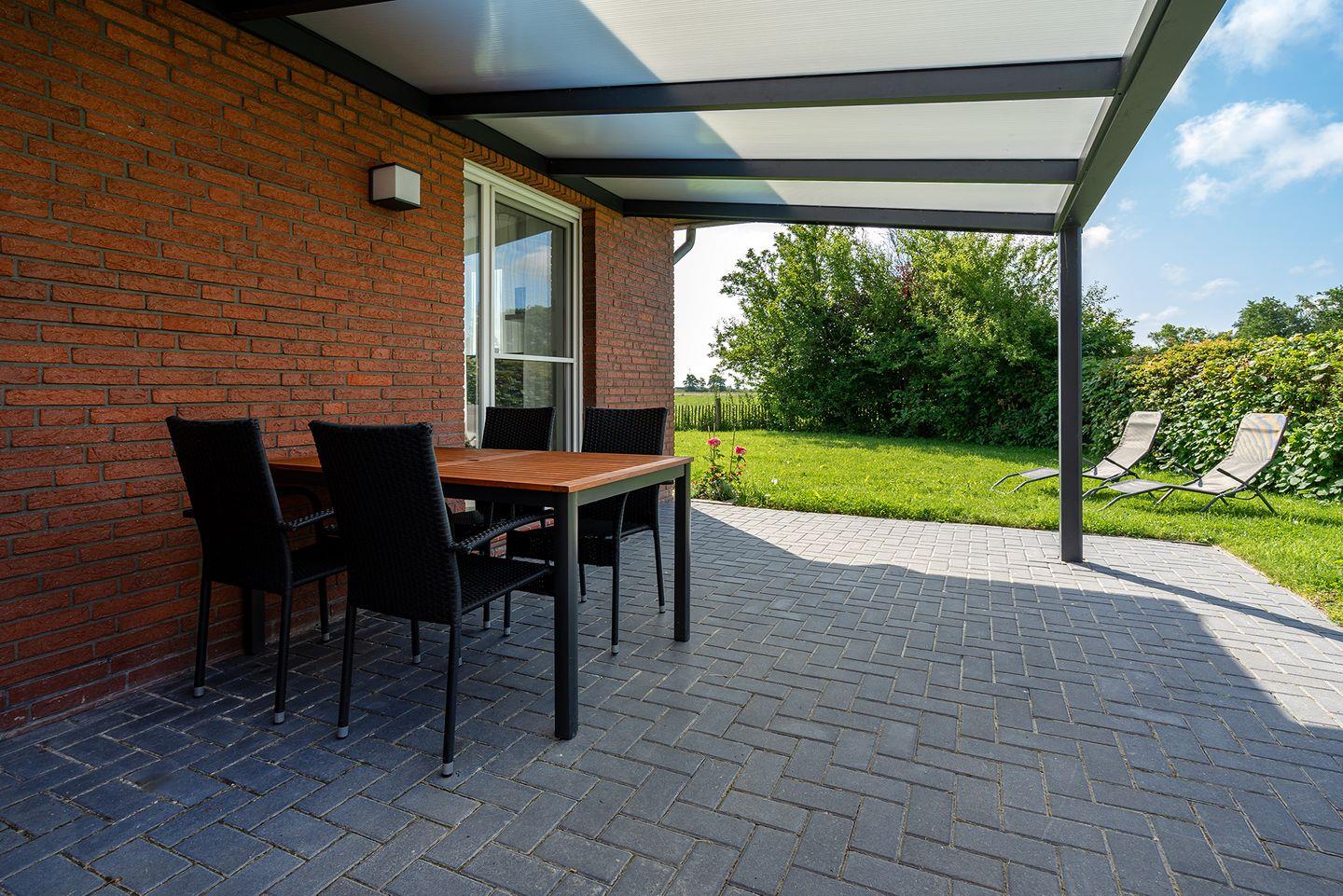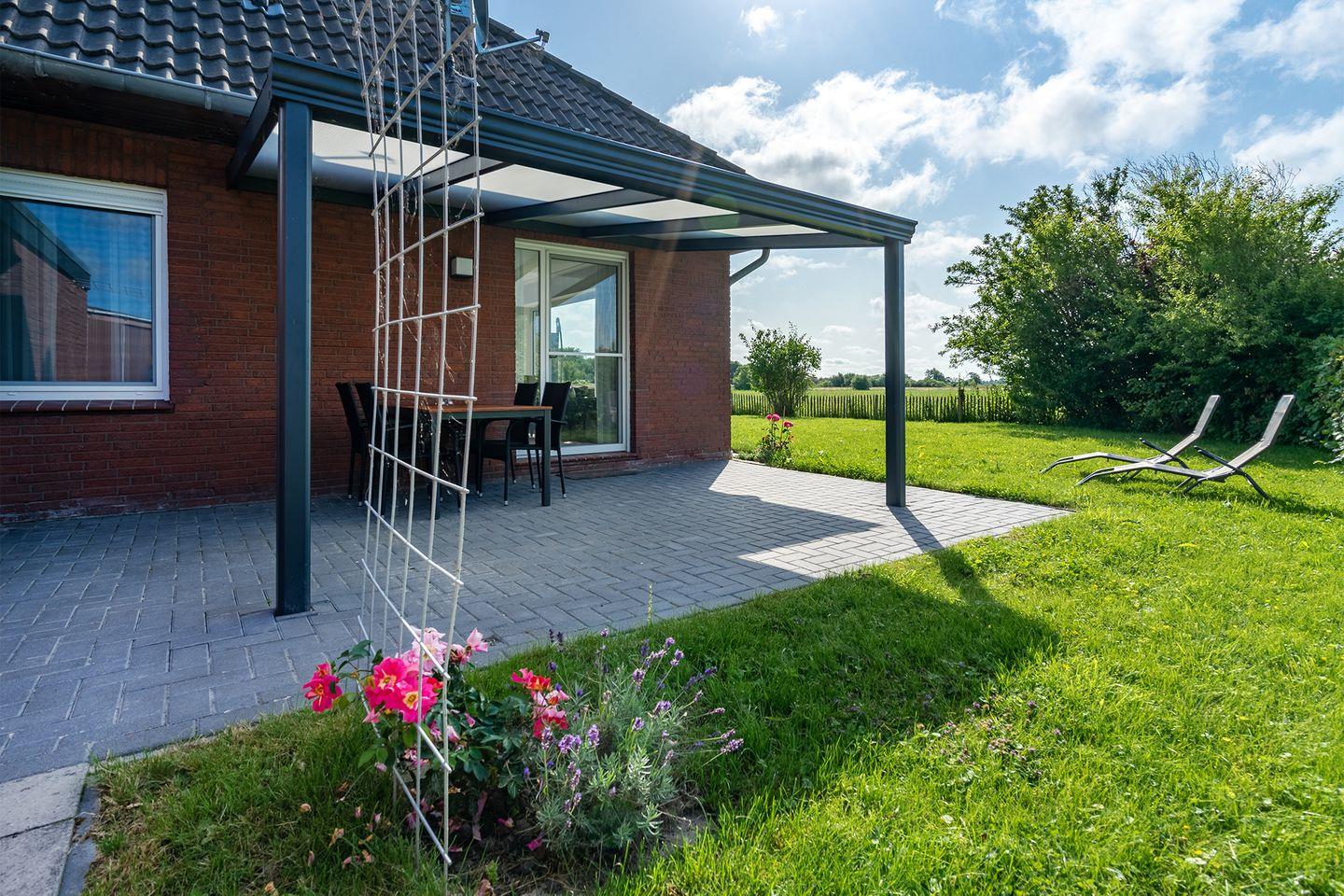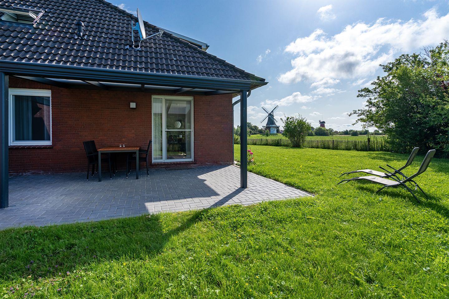 Moderne Ferienwohnung "Stuuv" in Greetsiel mit Blick auf die Zwillingsmühlen und sonniger Westterrasse.