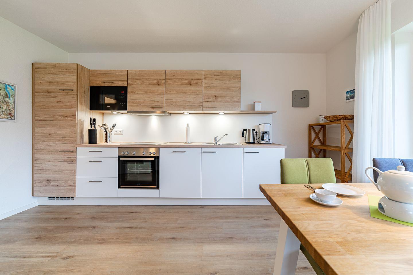 Eine voll ausgestattete Küche, die keine Wünsche offenlässt, damit Sie sich ganz wie zu Hause fühlen.