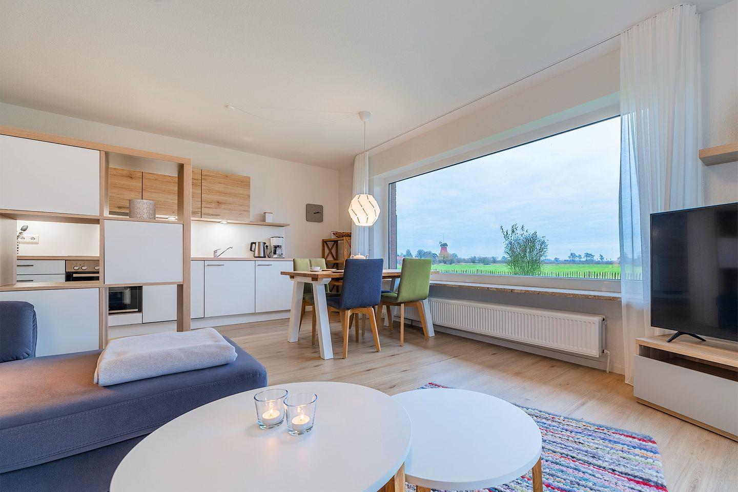 Moderne Ferienwohnung "Stuuv" mit Blick auf die Greetsieler Zwillingsmühlen