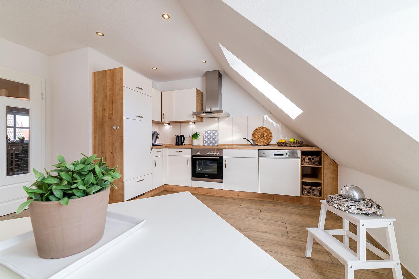 Die vollständig ausgestattete Küche lässt keine Wünsche offen und ermöglicht Ihnen, Ihre Mahlzeiten nach Belieben zuzubereiten.
