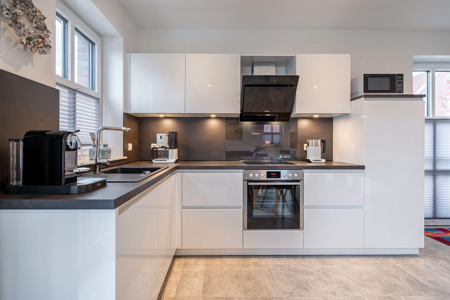Der großzügige Wohnbereich überzeugt mit hochwertiger Marken-Inneneinrichtung, die für eine behagliche Wohlfühlatmosphäre sorgt. Die moderne Küche ist umfangreich ausgestattet und schließt sich an den Esstisch an, an dem gemütliche Stunden verbracht werden können. Der offene Wohnbereich ist ideal, um sich zu entspannen.