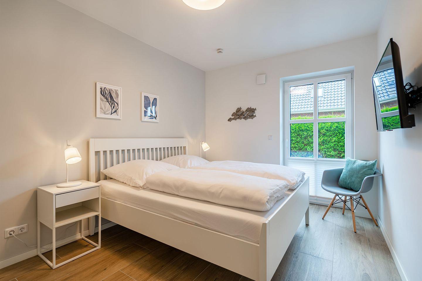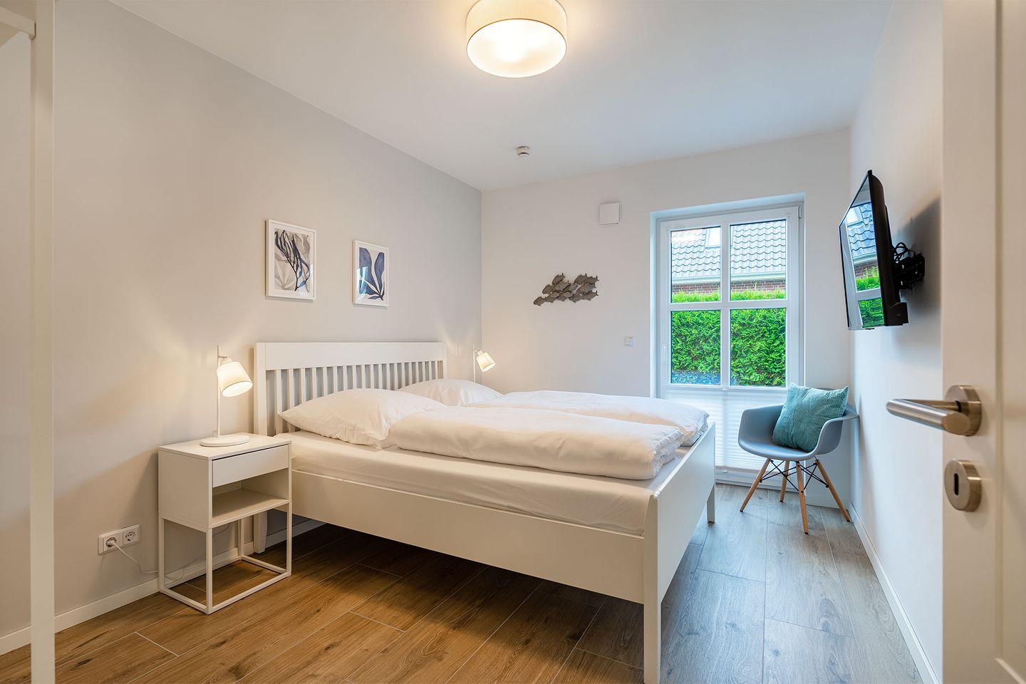 Die Ferienwohnung "Hafenmuschel" bietet auf ca. 70qm Ruhe und Komfort in zentraler Lage. Mit zwei getrennten Schlafzimmern mit TV, einem lichtdurchfluteten Wohnraum mit Küchen- und Essbereich sowie einem modernen Badezimmer mit ebenerdiger Dusche und WC, ist die Wohnung ideal für einen erholsamen Urlaub. Genießen Sie die alleinige Nutzung der Außensauna an kalten Wintertagen. Ein eigener Parkplatz, Fahrradabstellraum, elektrische Jalousien und Fliegengitter runden das Angebot ab.