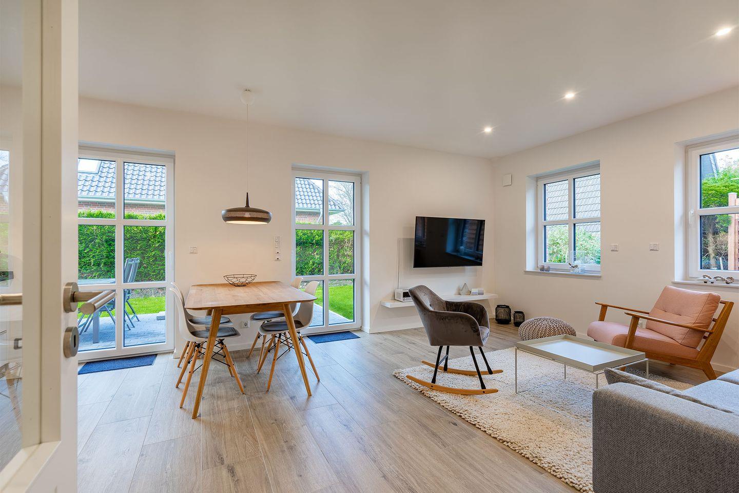 Moderne Ferienwohnung Hafenmuschel in Greetsiel mit Sauna und exklusiver Ausstattung für erholsamen Urlaub.