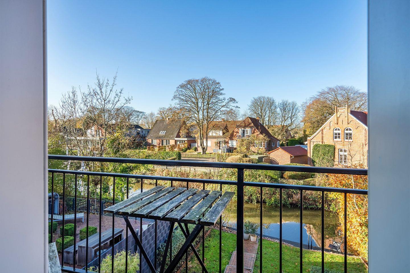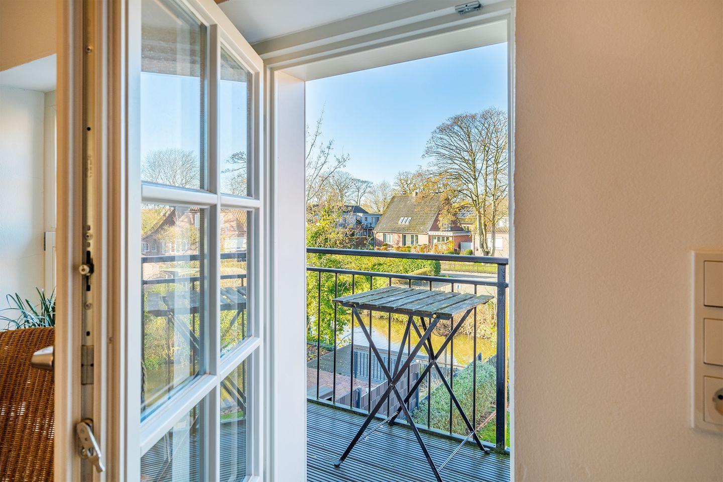 Vom Wohn- und Essbereich gelangen Sie auf den Balkon, von dem aus Sie auf das Wasser blicken und die Natur genießen können. Die Atmosphäre hier lädt zum Entspannen ein – der perfekte Ort, um abzuschalten.