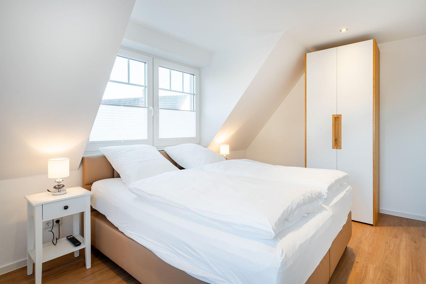 Das Schlafzimmer ist mit einem komfortablen 180 cm Boxspringbett ausgestattet und garantiert erholsame Nächte.