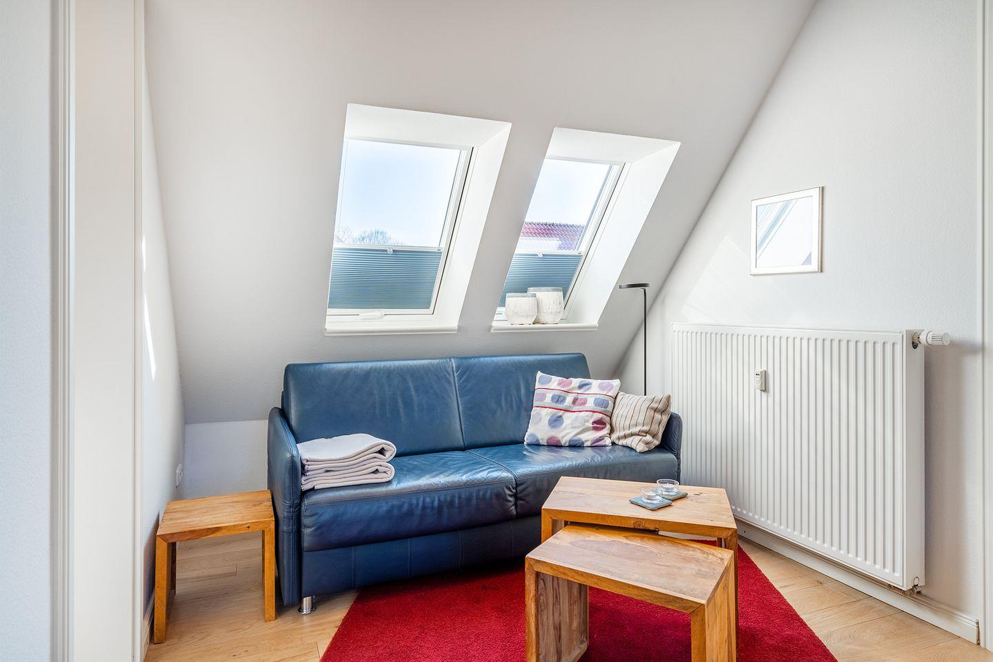 Die offene Wohn- und Essbereich lädt mit einer Schlafcouch zum Entspannen und Verweilen ein. Hier können Sie den Tag gemütlich ausklingen lassen.