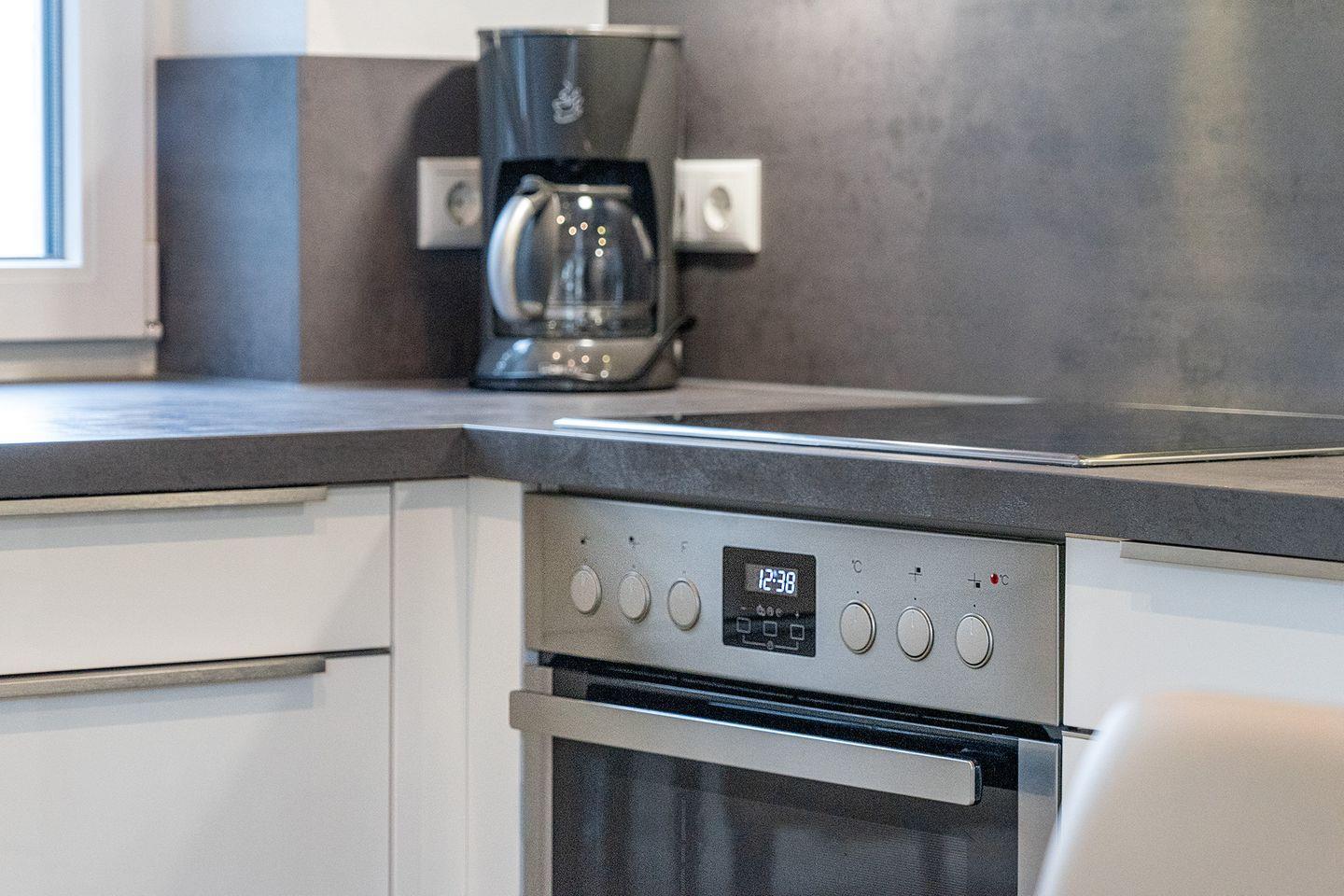 Die Wohnung bietet einen großen, offenen Wohn-Essbereich mit einer modernen Küche. Sie ist vollständig ausgestattet und beinhaltet alles, was Sie zum Kochen oder für ein gemütliches Frühstück benötigen.