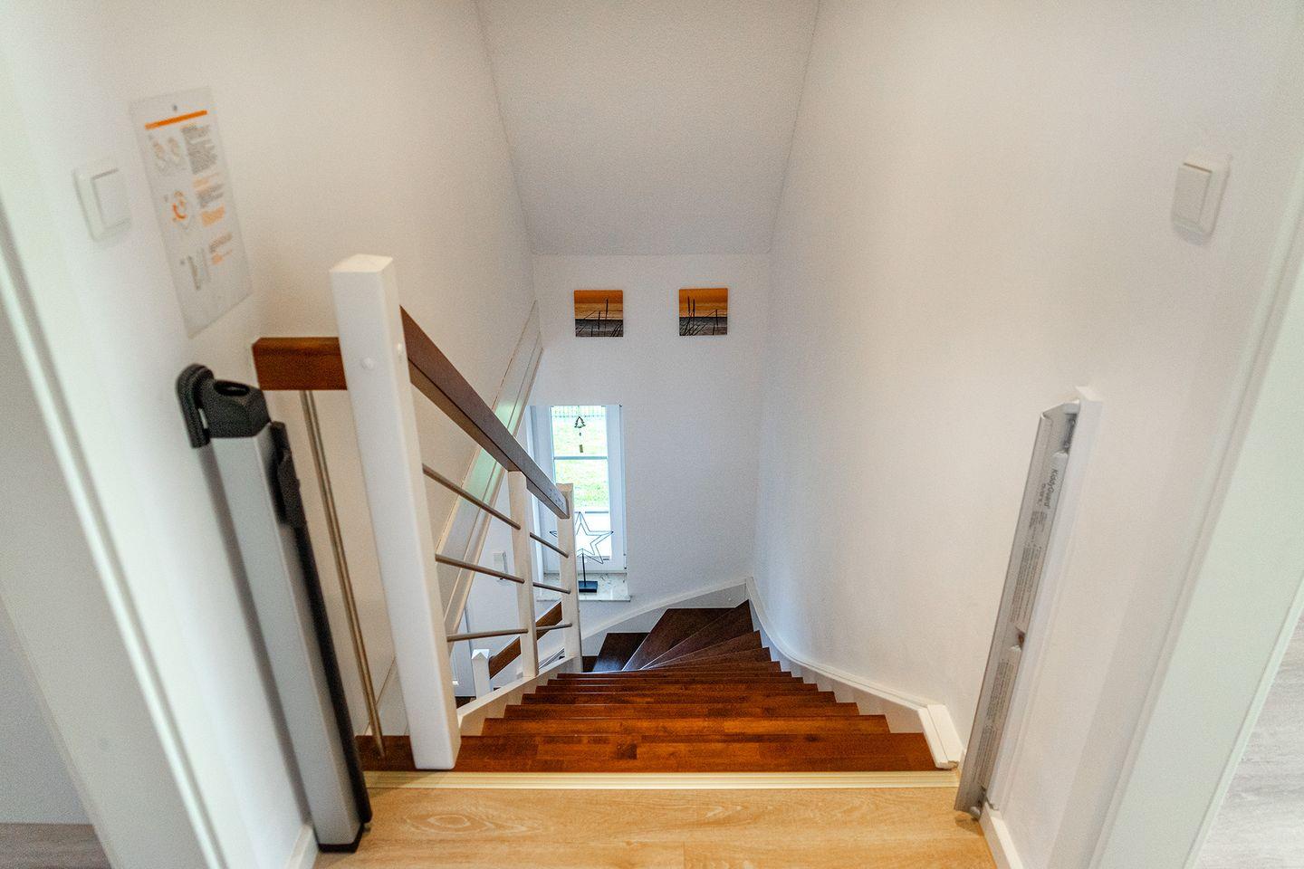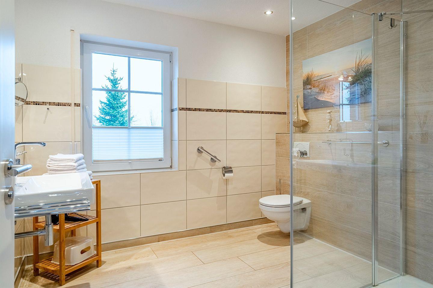 Das Ferienhaus ist mit breiten Türdurchgängen, elektrisch verstellbaren Lattenrosten im EG, einer großräumigen Dusche im EG sowie Rampenzugängen für die Eingänge behindertenfreundlich ausgestattet.