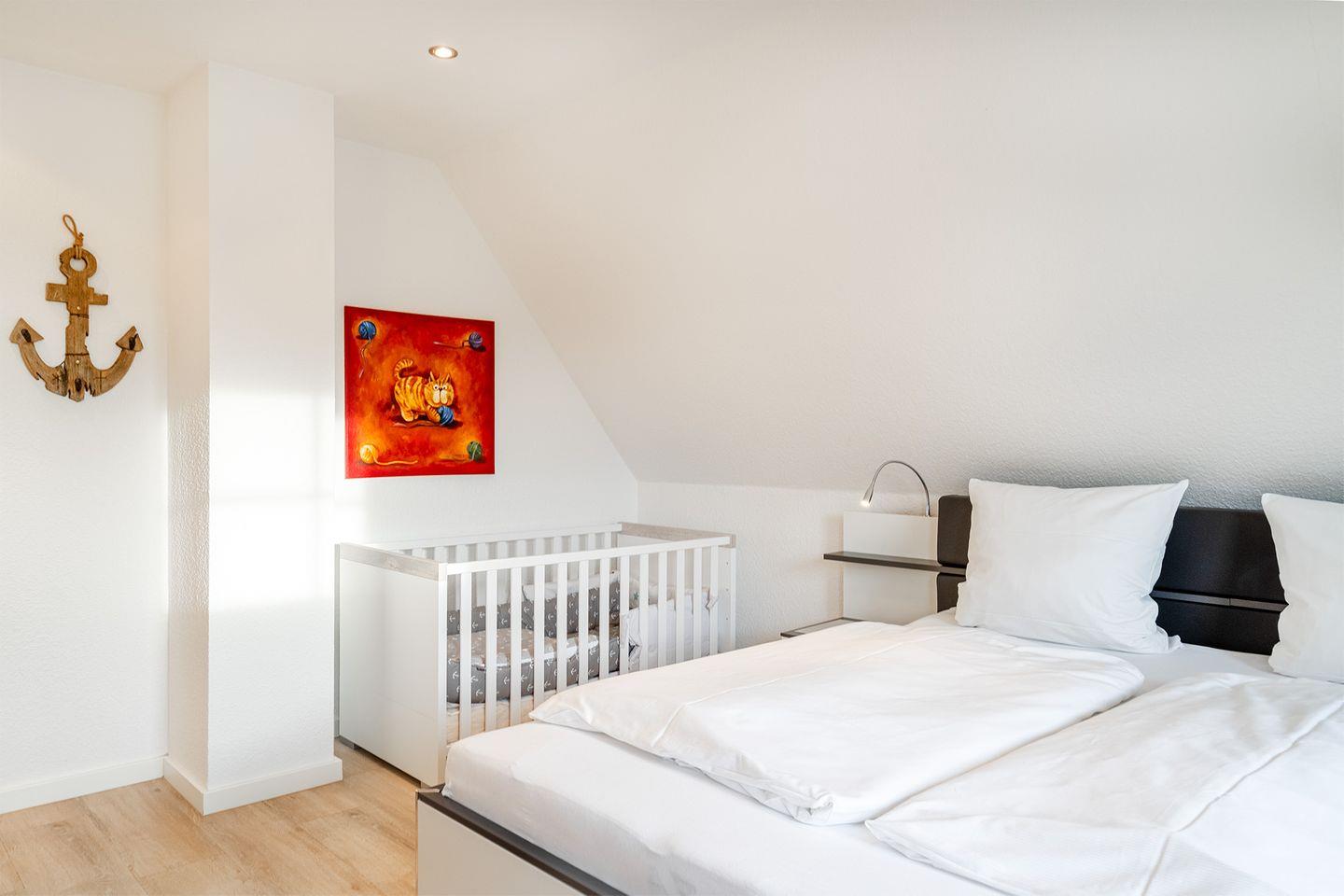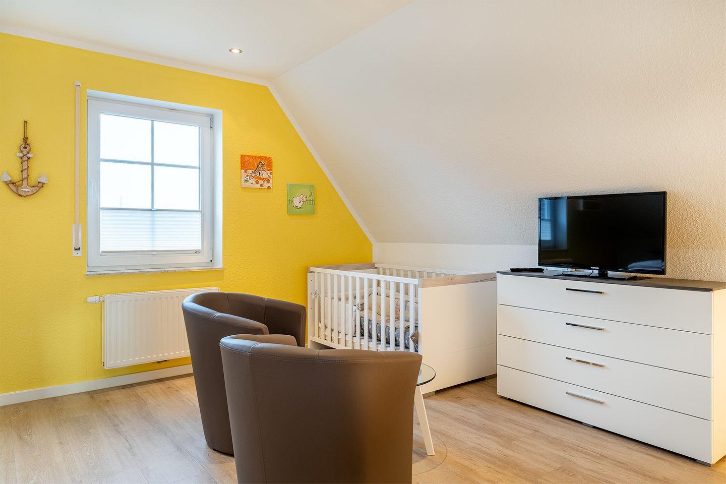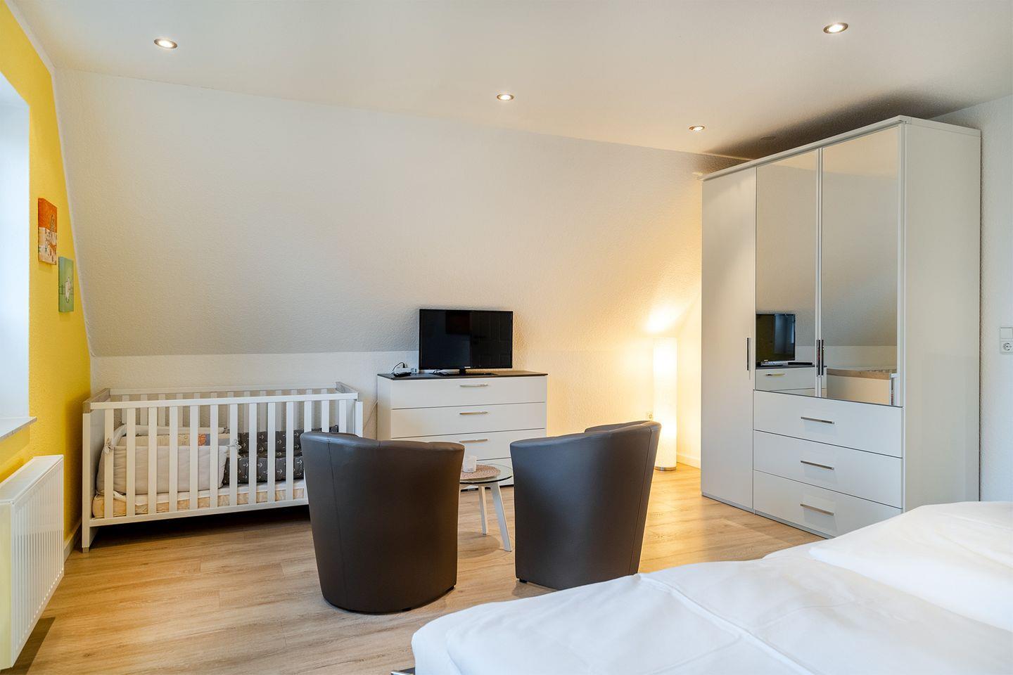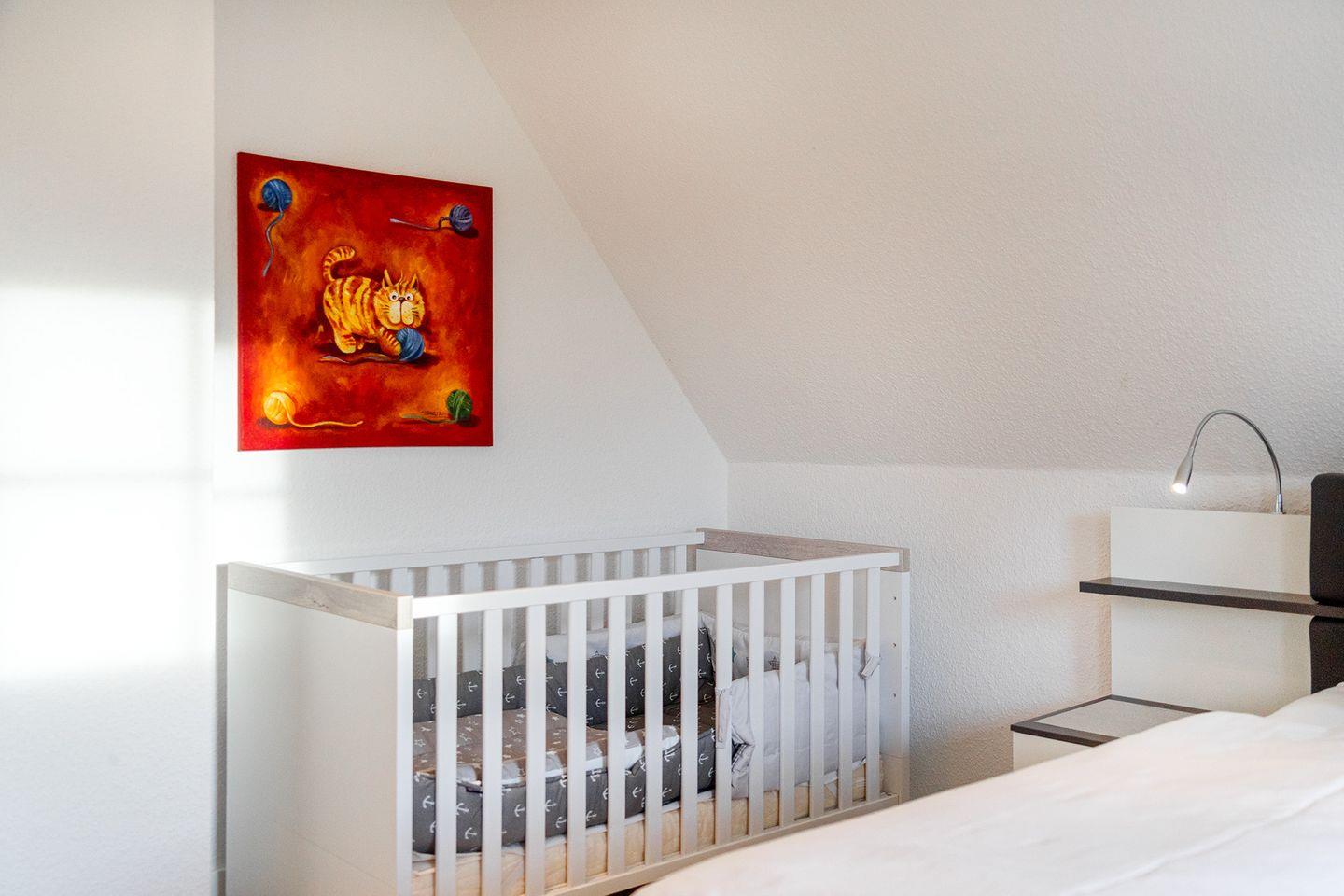 Für Familien mit kleinen Kindern sind zwei Kinderbetten und zwei Hochstühle vorhanden. Zudem wurden alle Steckdosen mit erhöhtem Berührungsschutz ausgestattet, um zusätzliche Sicherheit zu gewährleisten.
