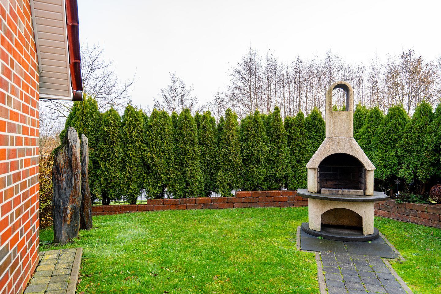 Auf dem großzügigen, eingezäunten Grundstück haben Ihre Kinder und Hunde ausreichend Platz, um sich auszutoben. Die nicht einsehbare Hecke sorgt für Ihre Privatsphäre.