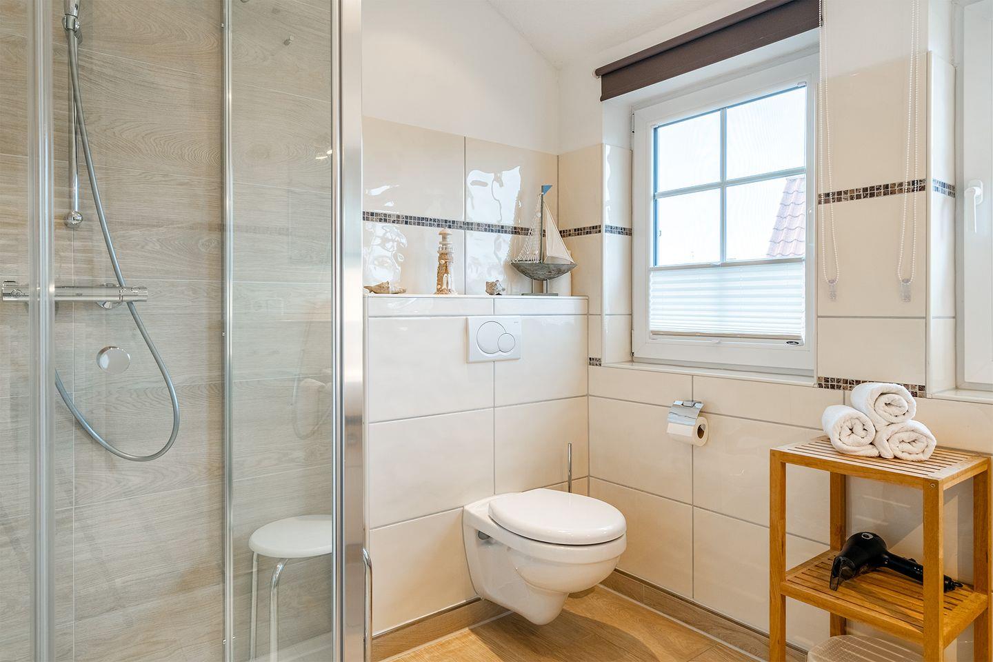Insektenschutz, blickdichte Plissees und Rollläden sind an allen Fenstern vorhanden.