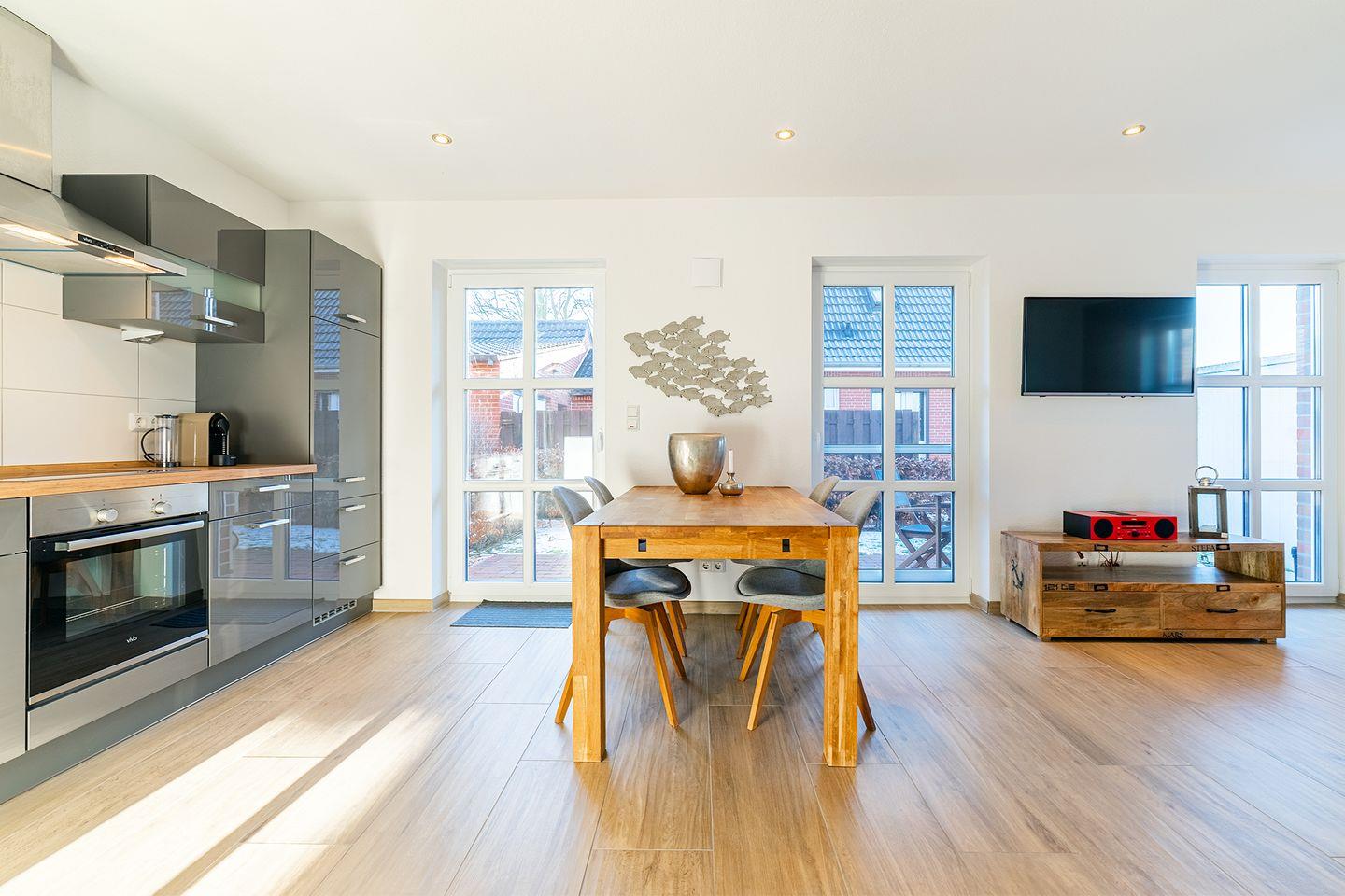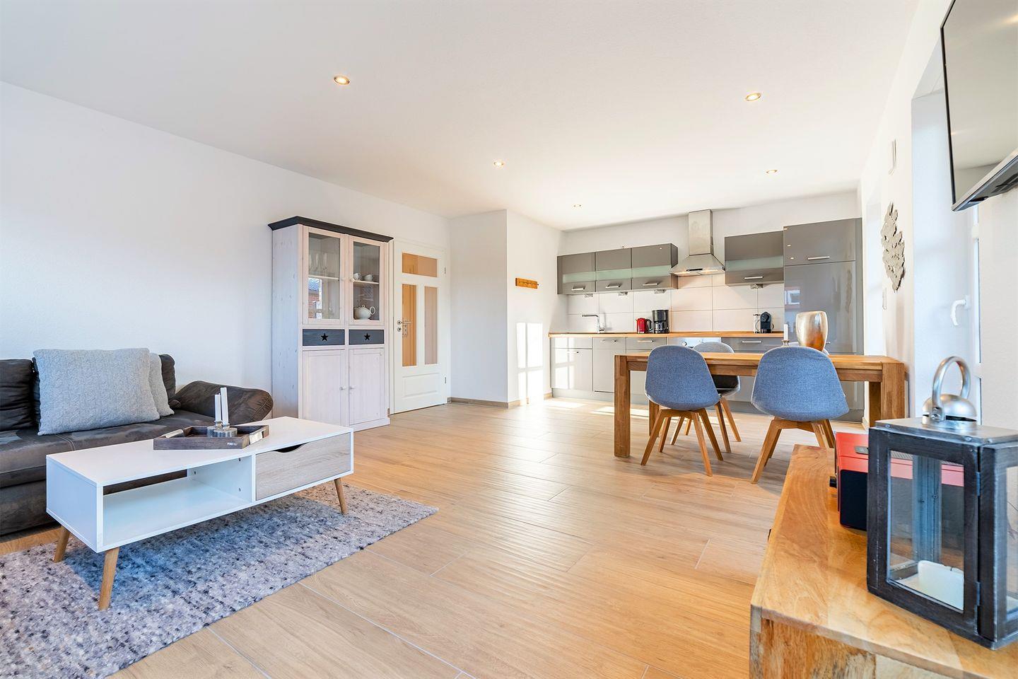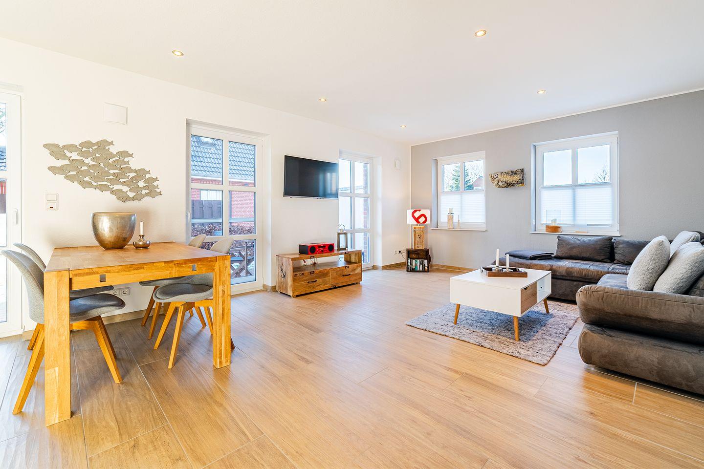 Diese wunderschöne Wohnung liegt ruhig und dennoch zentral, zwischen Deich und Hafen. Sie bietet alles, was für einen entspannten Urlaub nötig ist und verfügt über: