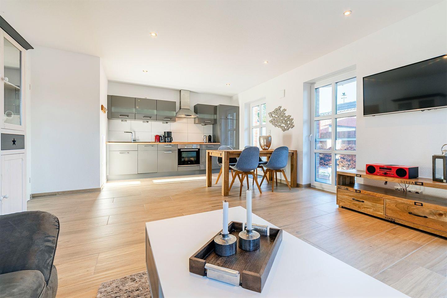 Lichtdurchfluteten Wohnraum mit kombiniertem Küchen- und Essbereich