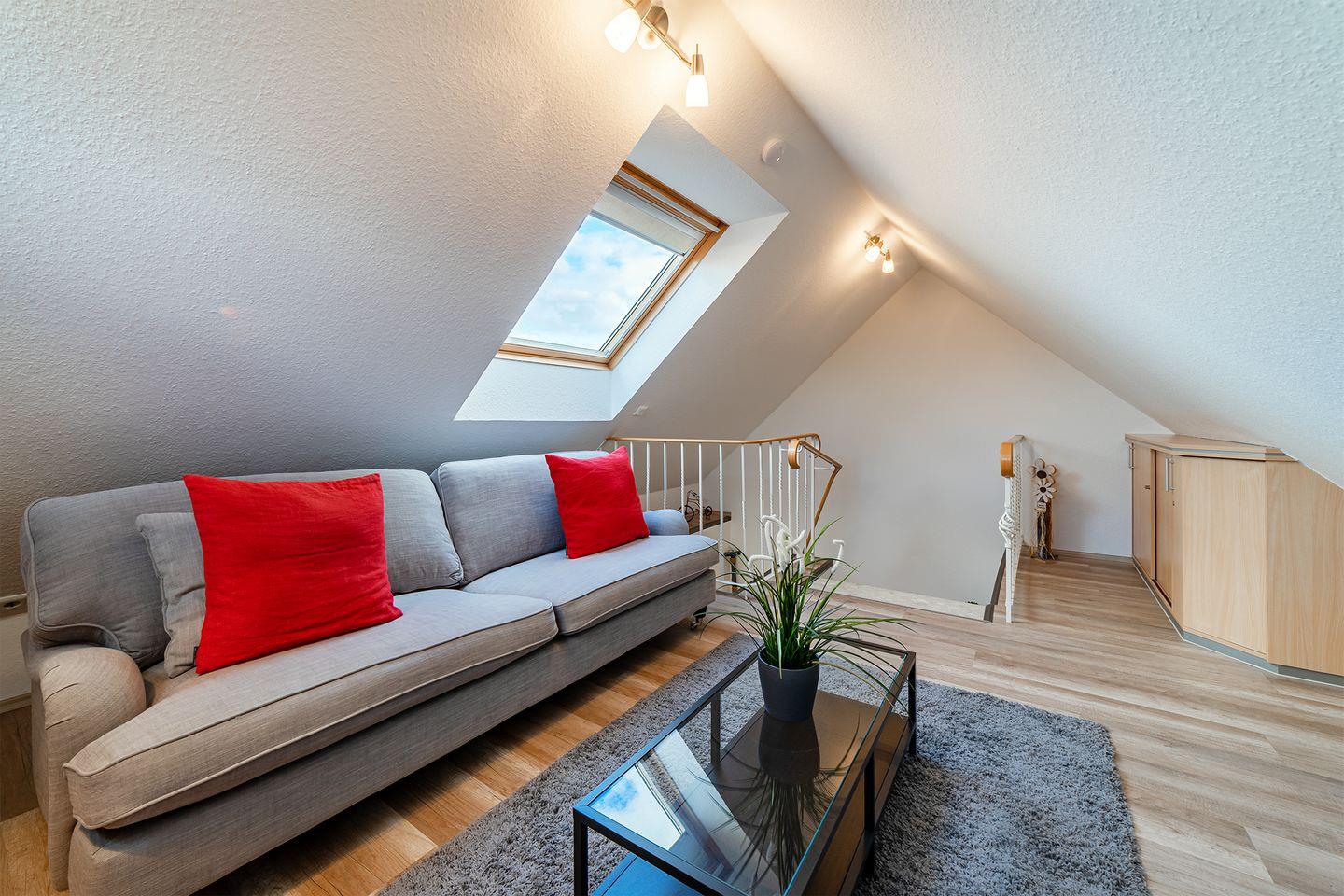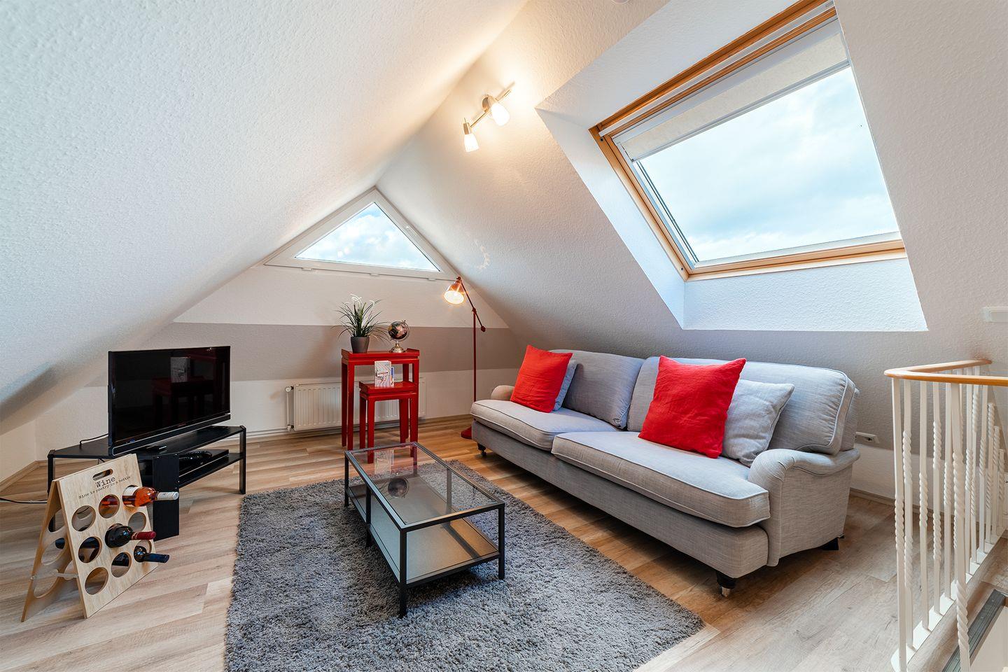 Im ausgebauten Dachgeschoss finden Sie eine besondere Entspannungszone, die in toller Atmosphäre zum Verweilen einlädt.