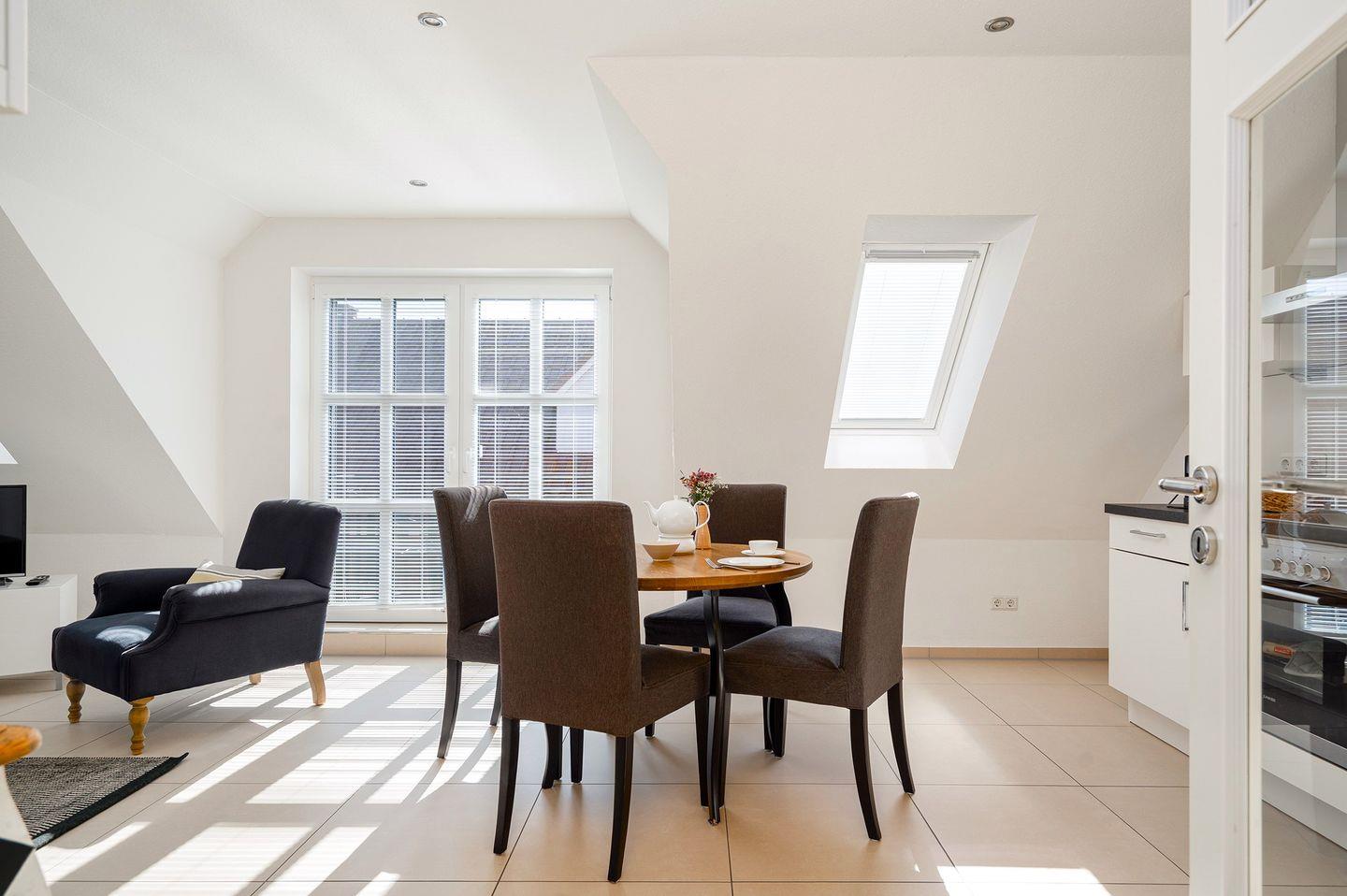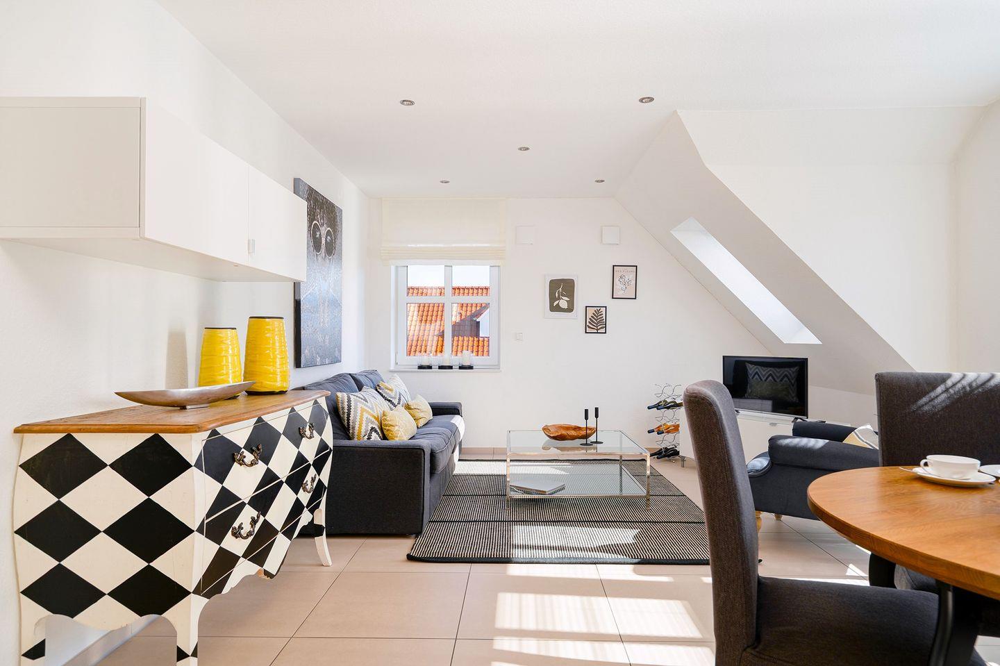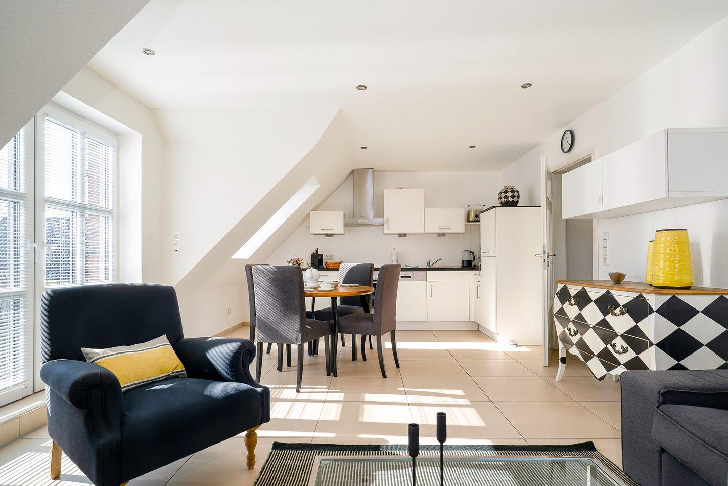 Die Obergeschosswohnung "Schuppen deluxe 03" bietet Ihnen eine ruhige, aber dennoch zentrale Lage im Ortskern von Greetsiel. Mit einer modernen und geschmackvollen Einrichtung wird diese Ferienwohnung zu einem echten Rückzugsort, an dem Sie sich rundum wohlfühlen können.