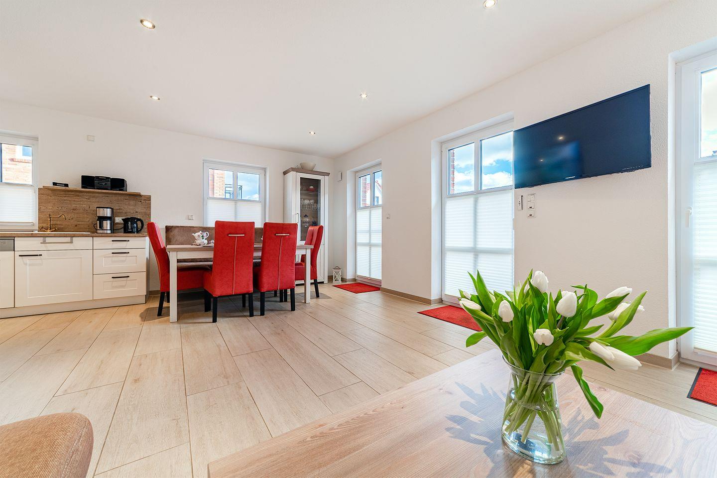 Großzügige Doppelhaushälfte "Lütt Wisch Hus" in Greetsiel mit hochwertiger Ausstattung und eingezäuntem Terrassenbereich.
