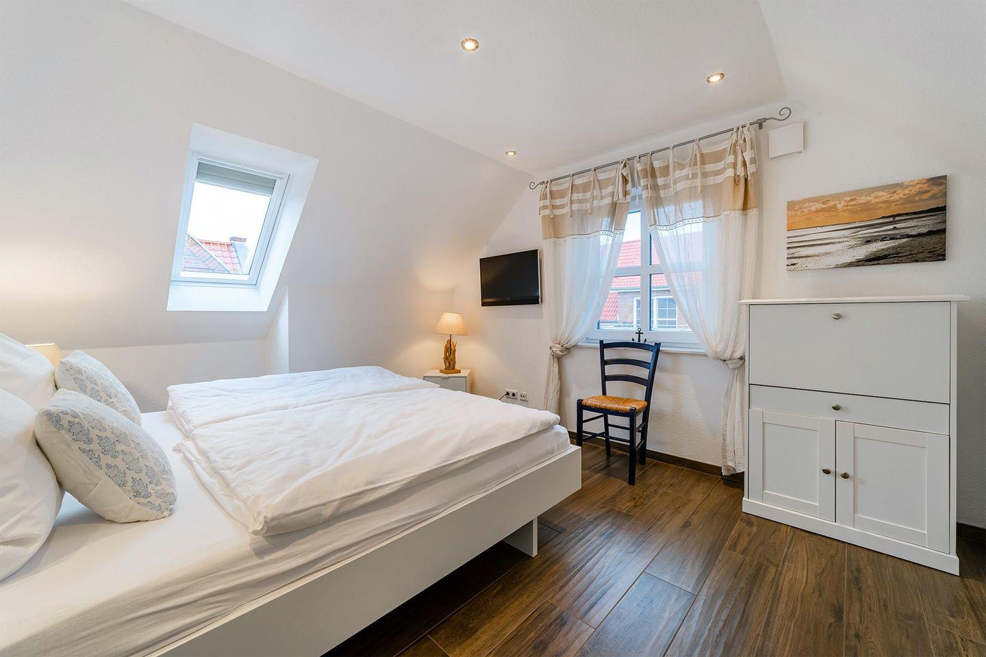 Das Ferienhaus Mühlentraum bietet Ihnen drei Schlafräume, die alle mit hochwertigen 7-Zonen-Kaltschaum-Matratzen ausgestattet sind. Zwei der Schlafräume sind zudem mit einem TV versehen, sodass Sie sich auch hier entspannen können.